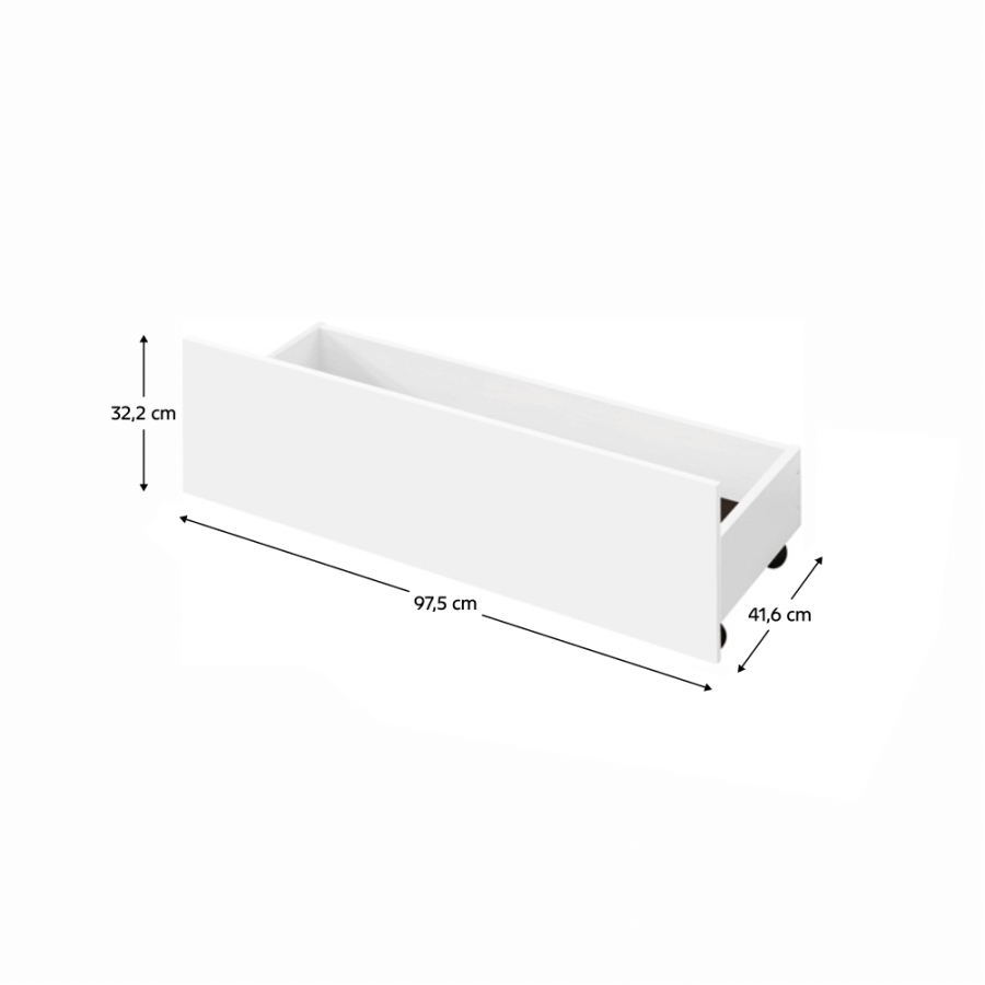 Kihúzható ágy alatti tároló, MIDEA Anyag: tömörfa/MDF Színe: fehér Méretek (SzéxMéxMa): 97,5x41,6x32,2 cm Rakodótér 2 darab a csomagolásban Lapraszerelten szállítva