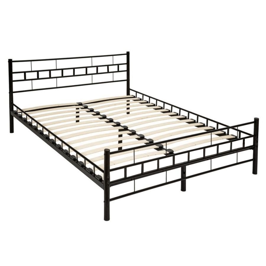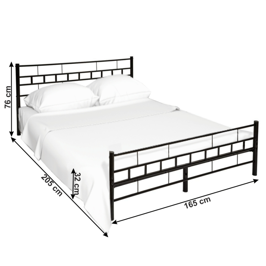 Anyag: fém Szín: fekete Méretek (SzéxMéxMa): 165x205x76 cm Fekvőfelület (SzéxHo): 160x200 cm Lécezett ágyráccsal Magasság az ágyrácsig : 32 cm Terhelhetőség: 100 kg Matrac nélkül Vásárolható hozzá matrac a mi kínálatunkból Bontásban szállítva.