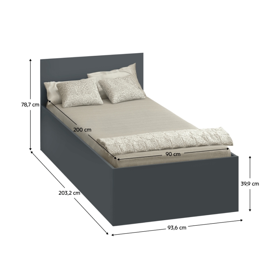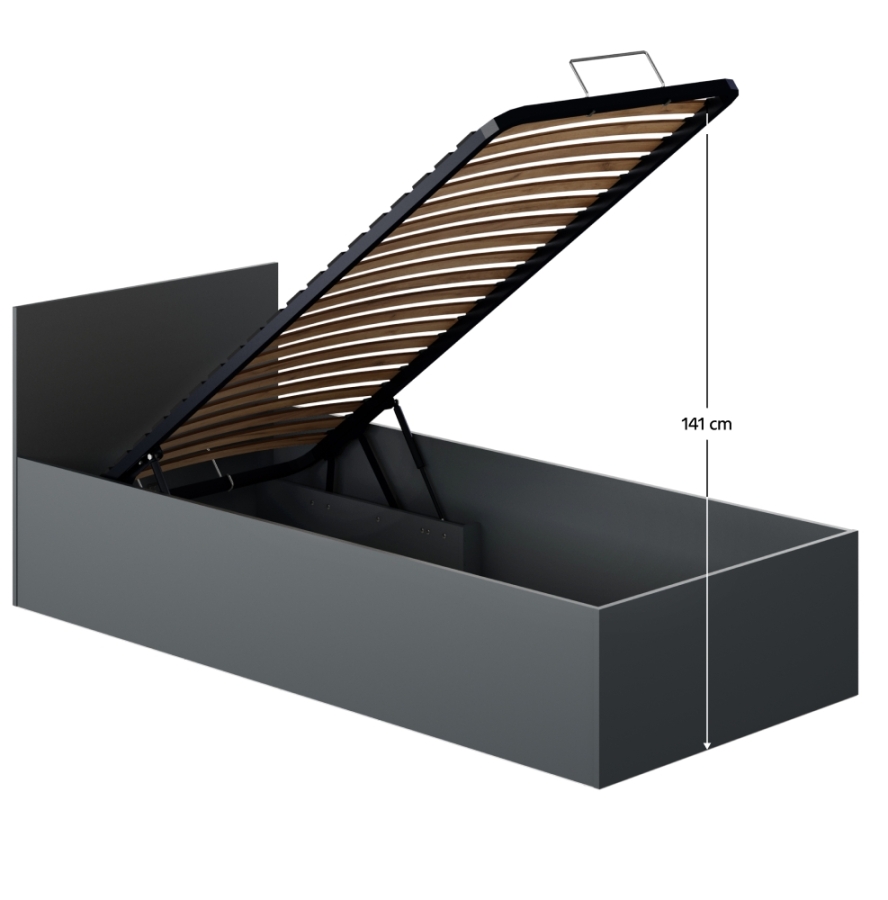 Ágy fém ráccsal és tárolóhellyel, 90x200, grafit, DOLI