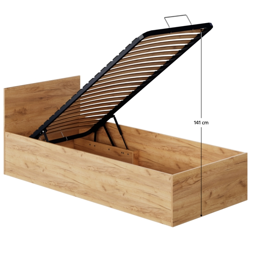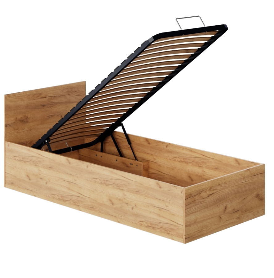 Ágy fém ráccsal és tárolóhellyel, 90x200, tölgy craft arany, DOLI