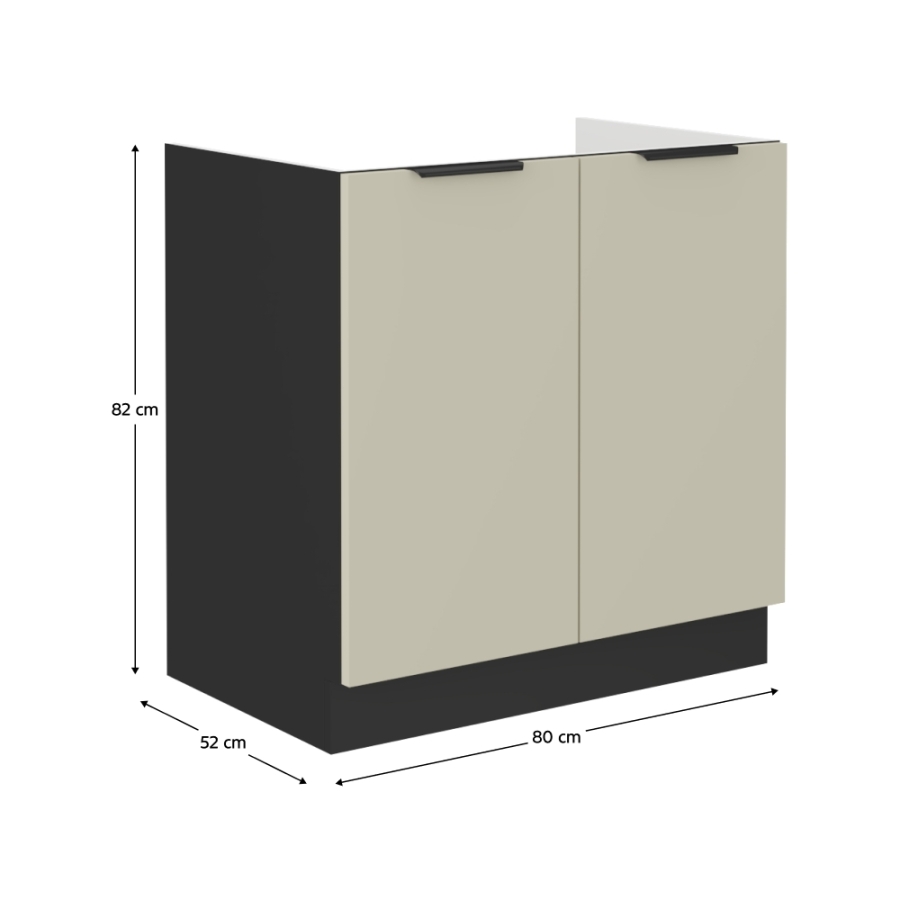 Alsó mosogató szekrény, cashmere/fekete, ARAKA 80 ZL 2F BB