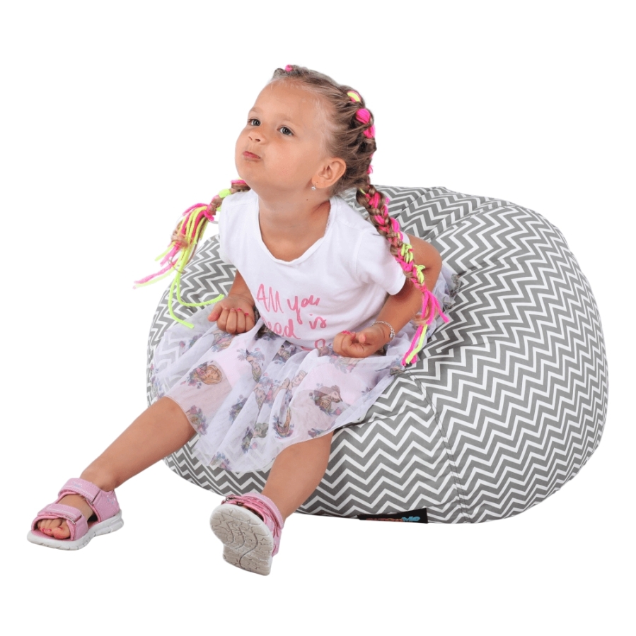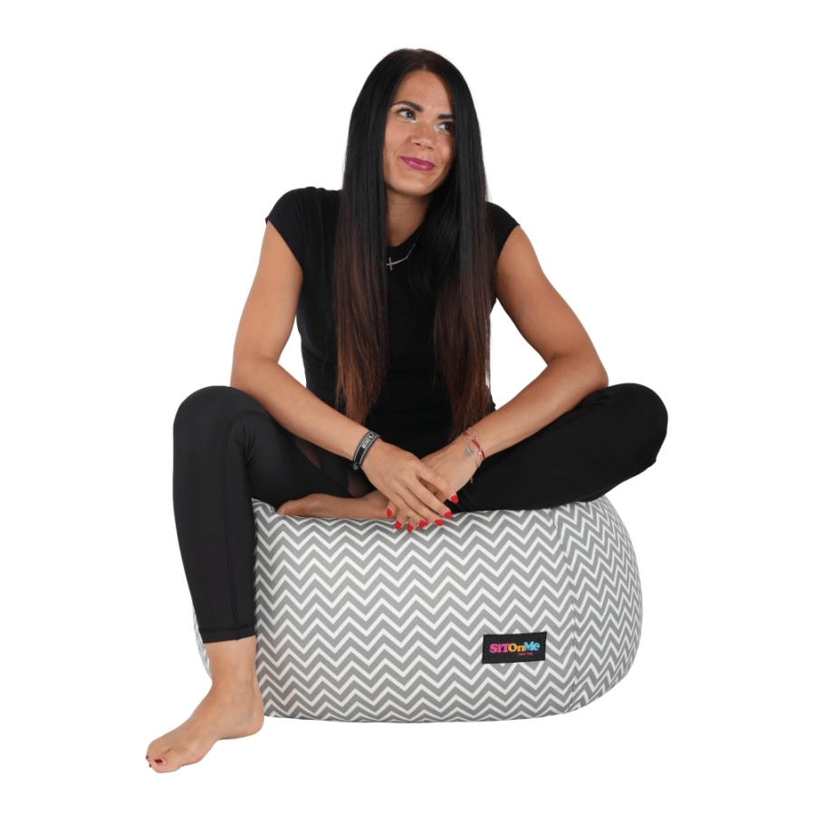Babzsák Anyag: szövet/EPS (polisztirol golyócskák) A szövet kopásállósága: 90 000 Martindale Szín: szürkés-fehér/cik-cakk minta Méretei (MéxMa): 60x50 cm Teherbírás: 90 kg Térfogat: 120 liter Egészben szállítva.