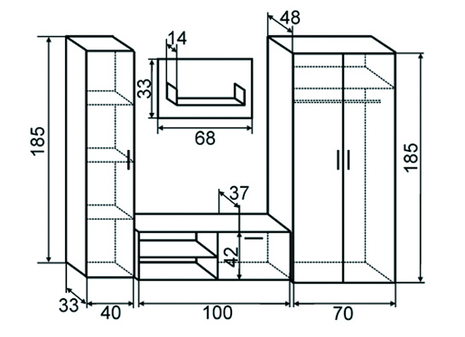 Magasság: 185 cm Szélesség: 210 cm Mélység: 48 cm