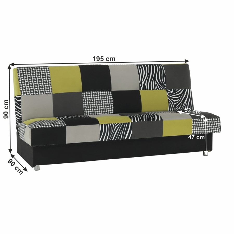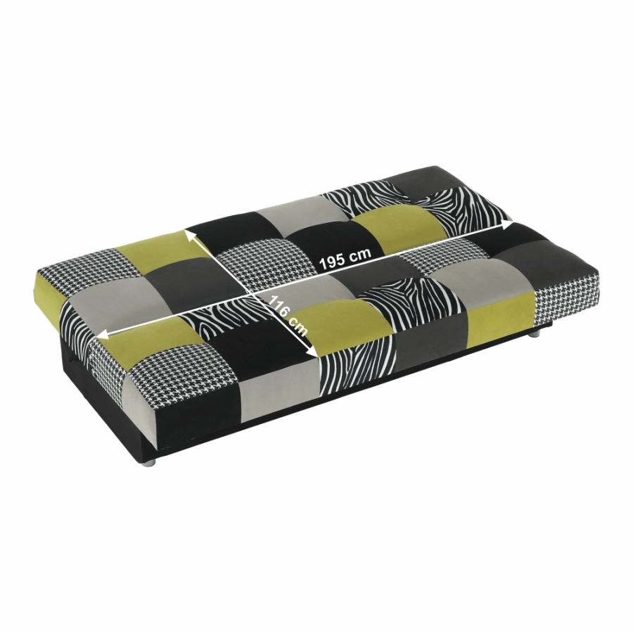 Széthúzható kanapé ALABAMA tárolóhellyel. Alkalmas mindennapi alváshoz is. Anyag: szövett Turkus A szövet kopásállósága: 55 000 Martindale Szín: lime zöld/szürke/fekete Méretek (SzéxMéxMa): 195x90x90 cm Fekvőfelület: 116x195 cm Terhelhetőség: 90 kg Kiváló minőségű bonel szivacs töltéssel az ülés részén.