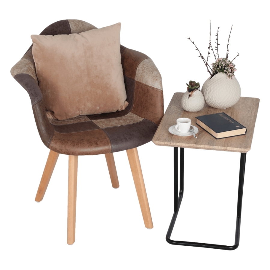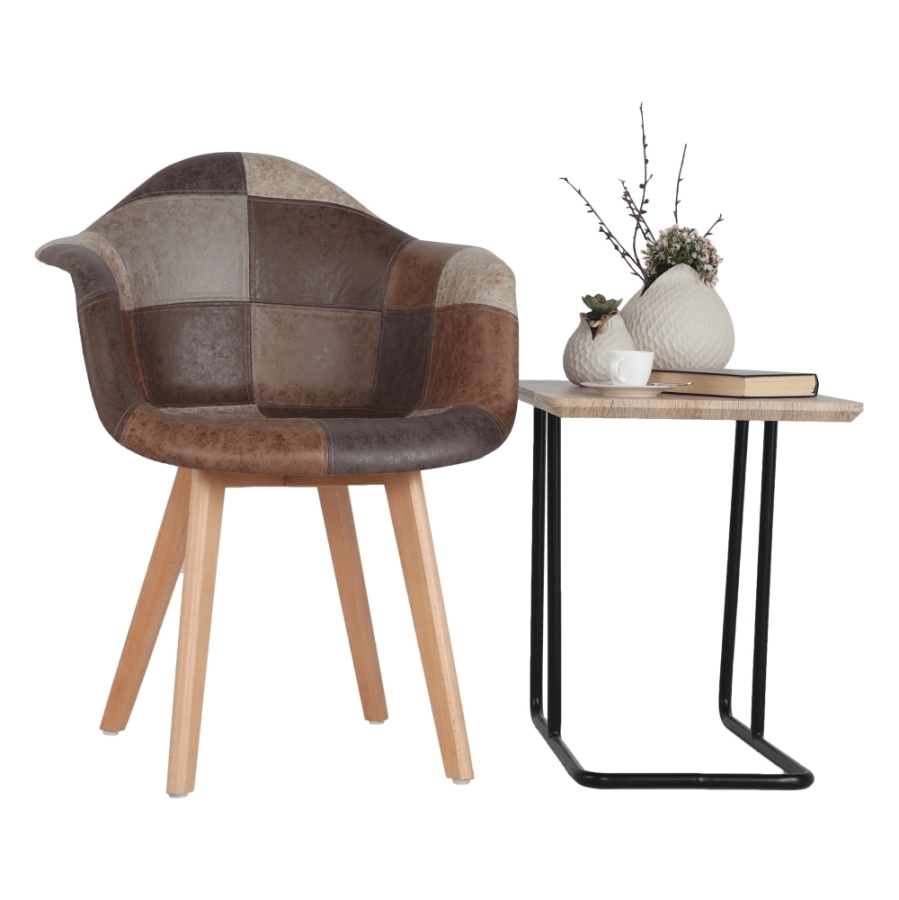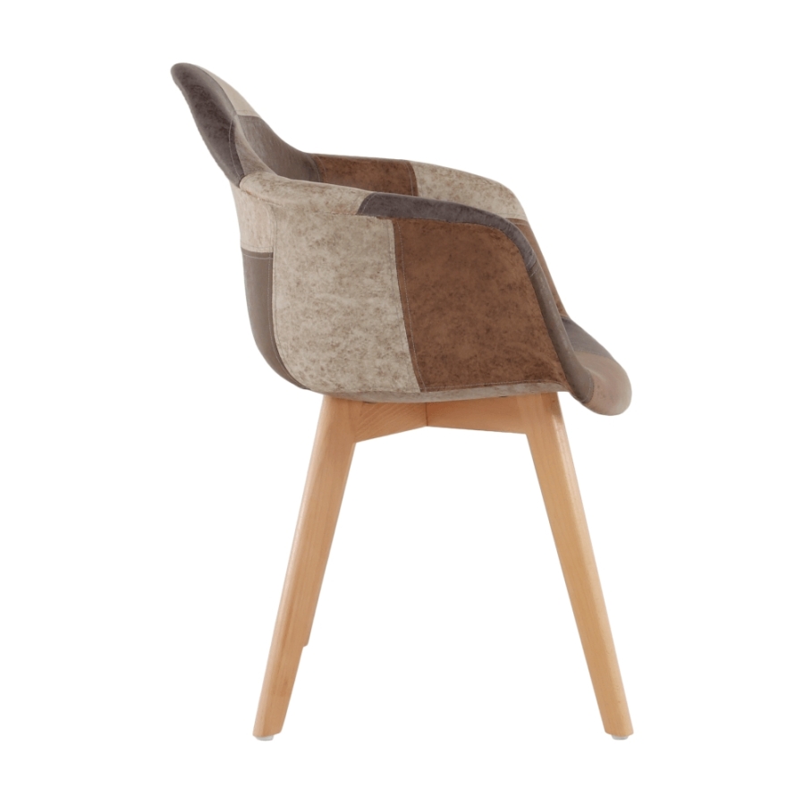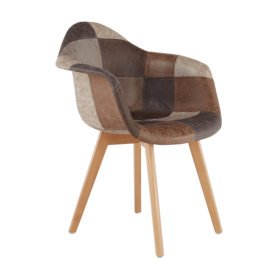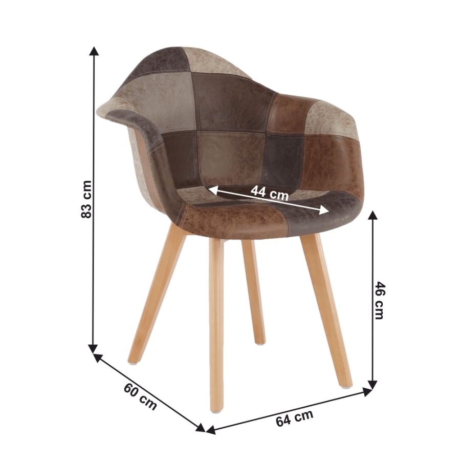 Fotel TERST Anyag: műanyag/textilbőr/fa Szín: patchwork/bükk Méretek (SzéxMéxMa): 64x60x83 cm Ülésmagasság: 46 cm Ülésmélység: 44 cm Divatos kivitelezés Bontásban szállítva.