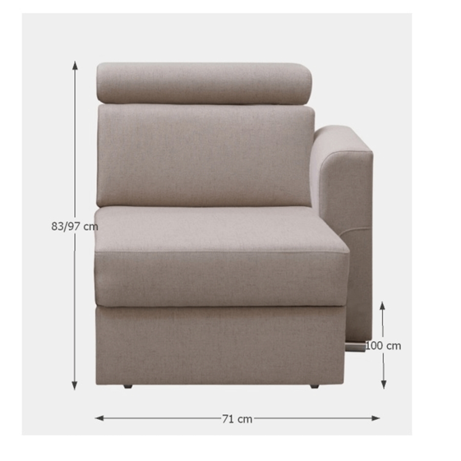 Egyszemélyes ülőrész 1 1B P, MARIETA ülőgarnitúrához, megrendelésre, jobbos kivitel Méretek: (SzéxMéxMa): 71x100x83/97 cm Az alsó tér magassága a padlótól: 5 cm Terhelhetőség ágyanként: 90 kg Anyag: CABLO A szövet kopásállósága: 72 000 Martindale Szín: bézs Rendelhető 7-féle színváltozatban Cablo szövetből vagy 7-féle színárnyalatban textilbőrből. Egyedi megrendelés esetén szükség van az adott összegnek a 10%-át befizetni,mint előleg. Az előleg befizetése után az Ön követelményét benyújtjuk a gyártónak. Szállítási határidő 8-10 hét.