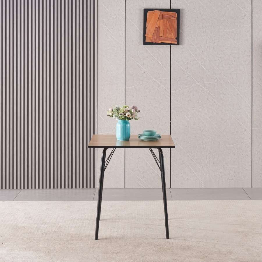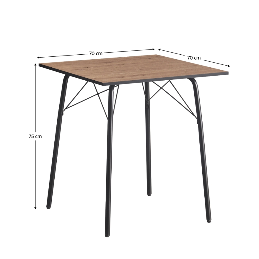 Anyag: MDF/fém Szín: artisan tölgy/fekete Méretek (SzxMéxMa): 70x70x75 cm Felső lap anyagvastagsága: 1,5 cm Teherbírás: 25 kg Egyszerű Minimalista Klasszikus kialakítás Fém lábak Egyszerű karbantartás Siklókkal a padló védelmére 4 fő részére Szétszerelve szállítva