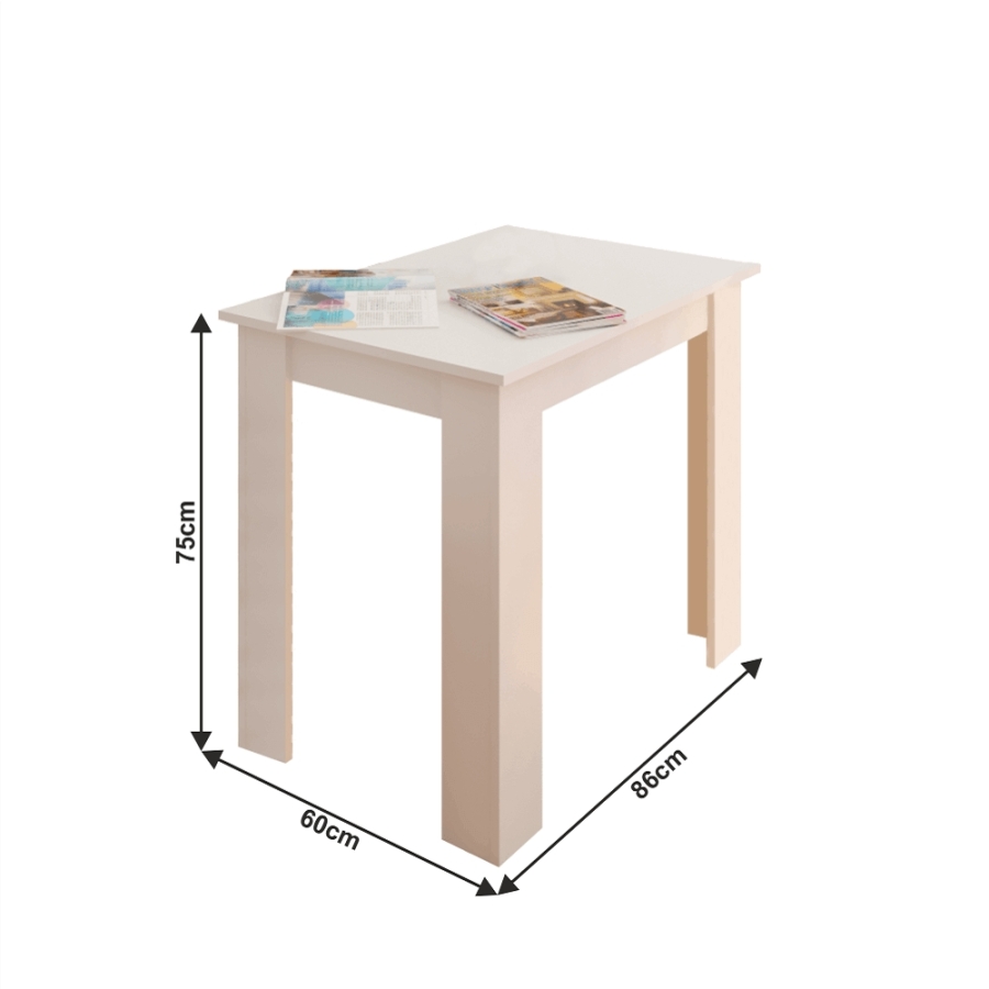 Étkezőasztal TARINIO Anyag: laminált DTD Változat: féher Méretek (SzéxMéxMa): 86x60x75 cm Anyag vastagsága: 16 mm Minőségi szlovák termék Szállítás szétszerelve
