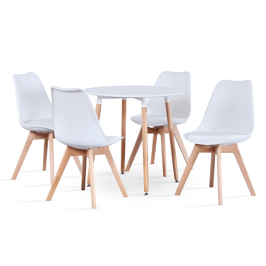 Étkezőasztal, fehér/bükk, átmérő 80 cm, ELCAN NEW TYP 2