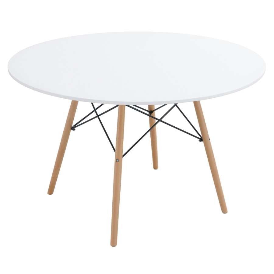 Étkezőasztal DEMIN NEW Asztalfelület anyaga: MDF Szín: matt fehér Váz anyaga: fa Szín: bükk Méretei (átmérő x Ma): 120x74 cm MDF anyagvastagsága: 1,5 cm Teherbírás: 35 kg Súly: 17 kg Praktikus Modern dizájn Bontásban szállítva