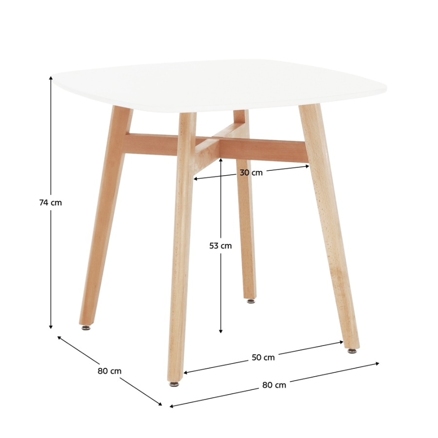 Anyaga: MDF/tömörfa Színe: fehér/természetes fa árnyalat Méretek (SzéxMéxMa): 80x80x74 cm Lapraszerelten szállítva