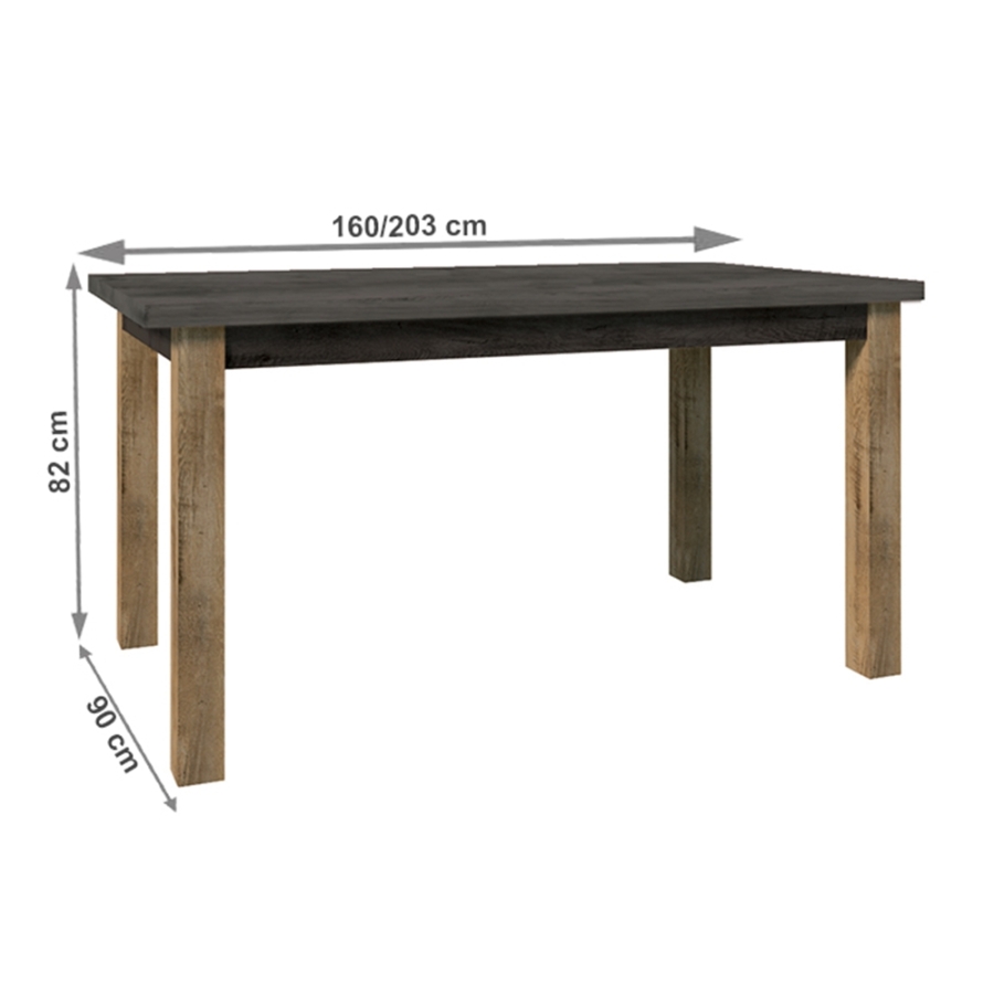Étkezőasztal, nyitható, tölgy lefkas sötét/smooth szürke, 160-203x90 cm, MONTANA STW
