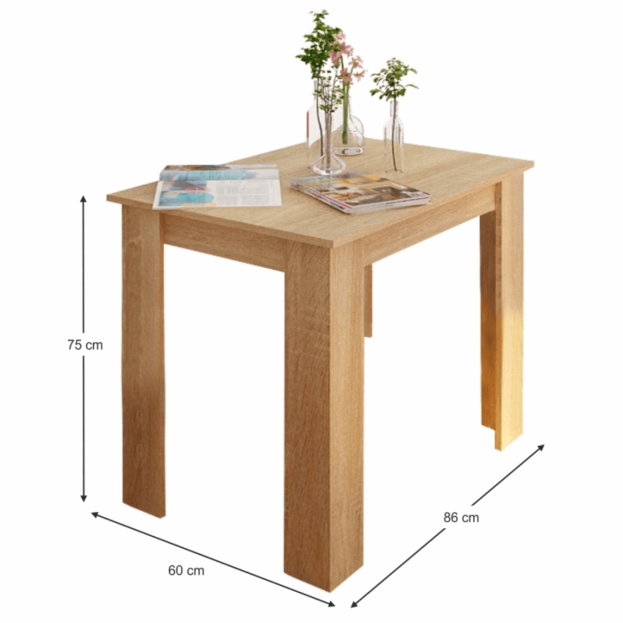 Étkezőasztal TARINIO Anyag: laminált DTD Változat: tölgy sonoma Méretek (SzéxMéxMa): 86x60x75 cm Anyag vastagsága: 16 mm Minőségi szlovák termék Szállítás szétszerelve