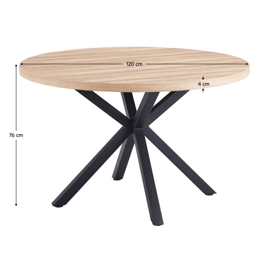 Étkezőasztal MEDOR Asztallap anyaga: MDF Szín: sonoma tölgy Lábak szerkezete: fém Szín: fekete Méretek PxV: 120x76 cm Kerek Ipari stílus Bontásban szállítva