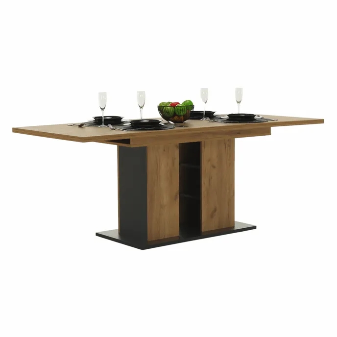 Étkezőasztal, tölgy craft arany/grafit szürke, 155-204x86 cm, FIDEL