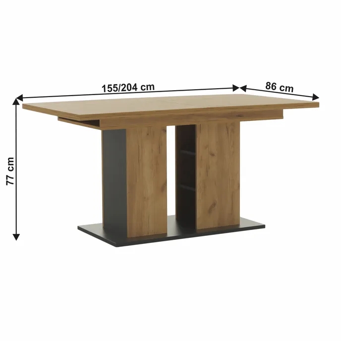 Anyag: DTD laminált Szín: tölgy craft arany/grafit szürke Méretei (SzéxMéxMa): 155-204x86x77 cm Korpusz anyag vastagsága: 16 mm Felső lap anyag vastagsága: 22 mm Szétnyitható Bontásban szállítva.