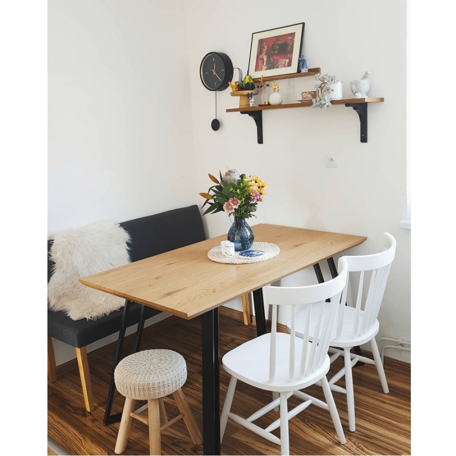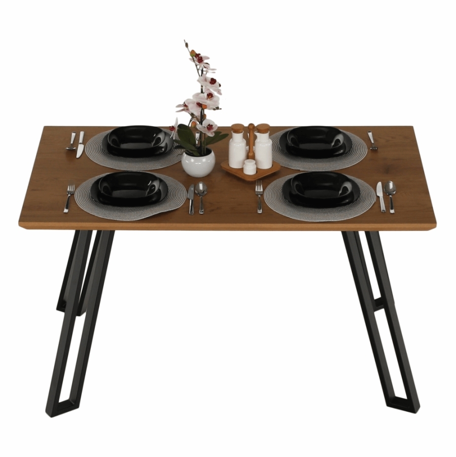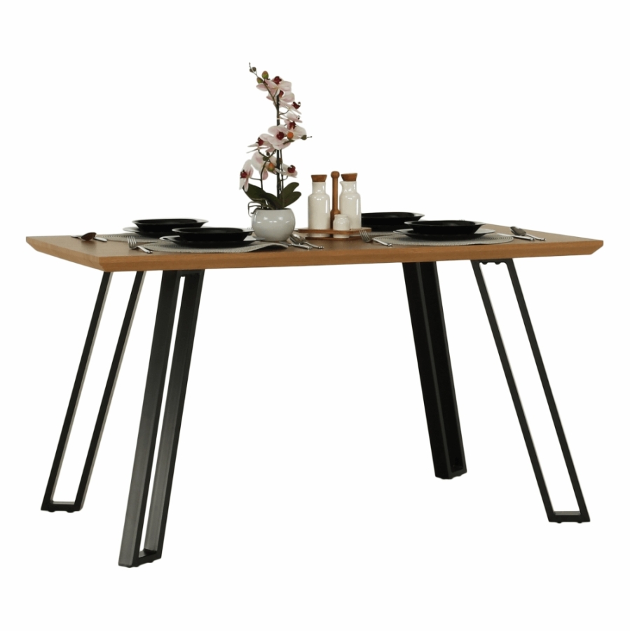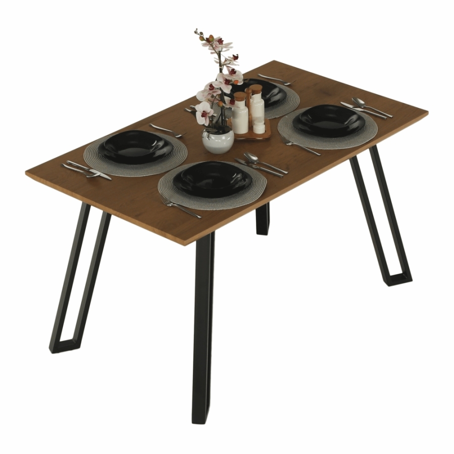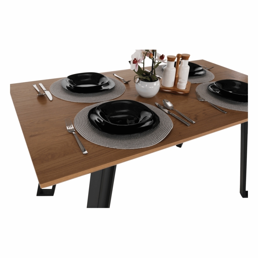 Anyag: MDF/fém Szín: tölgy/fekete Méretek (SzéxMéxMa): 140x80x76 cm 4-6 személynek Bontásban szállítva.