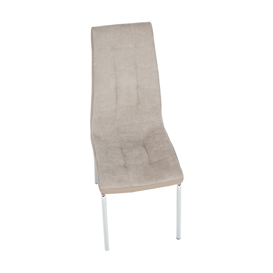 Étkezőszék GERDA NEW Anyaga: szövet/textilbőr/króm A szövet kopásállósága: 50 000/100 000 Martindale Színe: bézs/króm Méretek (SzéxMéxMa): 42x58x103cm Terhelhetőség: 110 kg Lapraszerelten szállítva.
