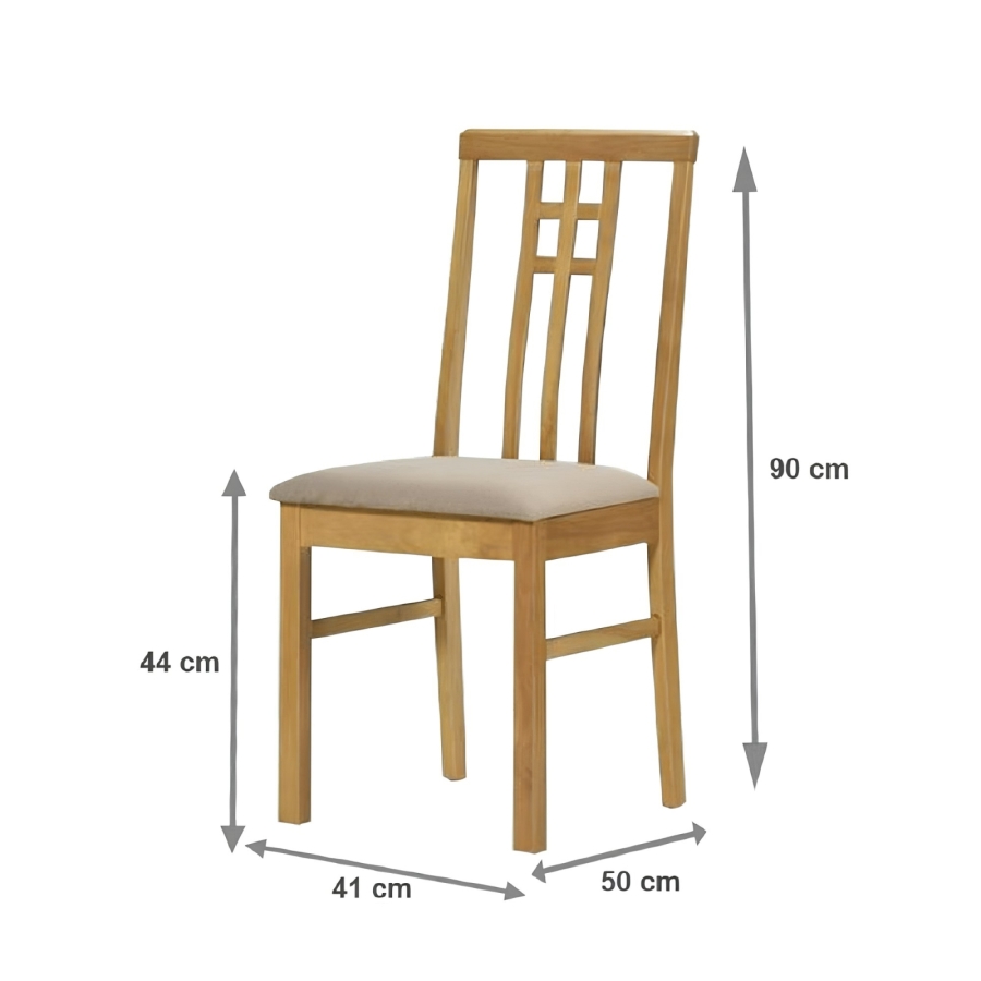 Étkezőszék SILAS Anyag: fa/szövet A szövet kopásállósága: 80 000 Martindale Színváltozat: sonoma tölgy/bézs Méretek (SzéxMéxMa): 41x50x90 cm. Ülőrész magassága: 44 cm Ülőrész mélysége: 41 cm Teherbírás: 110 kg Szállítás szétszerelve.