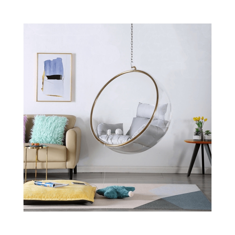Függő fotel, átlátszó/arany/szürke, BUBBLE NEW TYP 1
