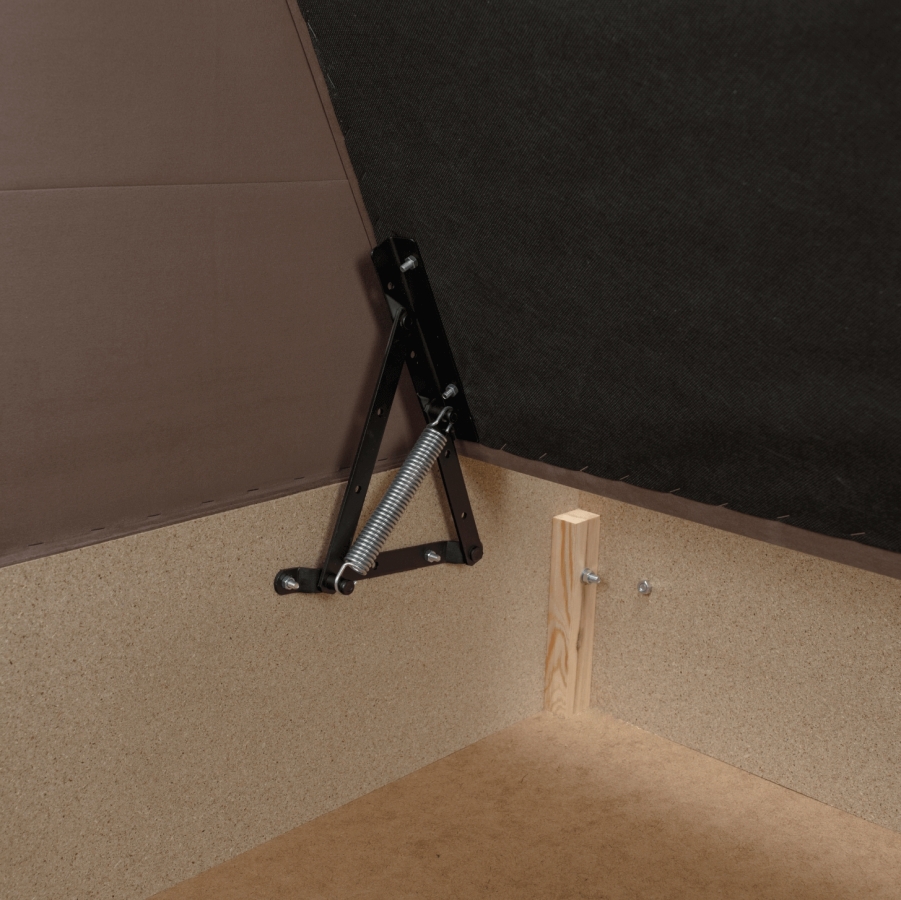 Anyag: laminált DTD/szövet Trinity 06 A szövet kopásállósága a Martindale teszt szerint: 210 000 ciklus Heverő magja: purhab T28 Szín: barna Taupe Méretek (SzxMéxMa): 93x204x75 cm Alvófelület (SzxHo): 90x200 cm Magasság a padlótól a matracig: 42 cm Teherbírás: 110 kg Matrac keménysége: H3 Univerzális Tárhely Oldalsó billenőmechanizmus Praktikus oldalsó homlok Magas homlokrész Az előlapok megakadályozzák a fal súrlódását Steppelt homlokrész Dekoratív gombok Szétszerelve szállítva