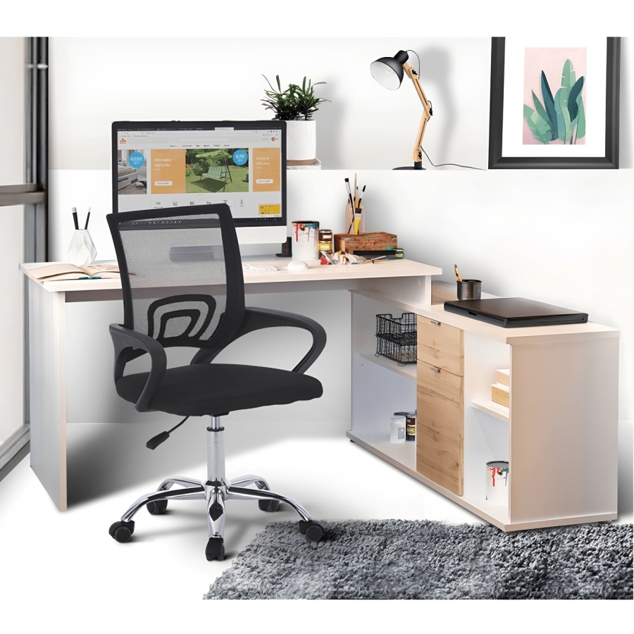 Univerzális sarokíróasztal, számítógépasztal, polcokkal és fiókos szekrénnyel, DALTON 2 NEW