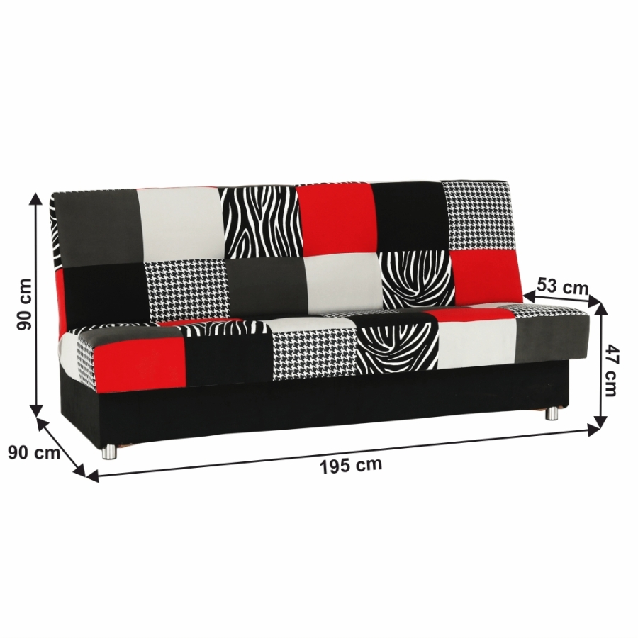 ALABAMA kanapé ágyfunkcióval és ágyneműtartóval. Egyszerű ágyazhatóság. Anyag: Turkus szövet. A szövet kopásállósága: 55 000 Martindale Szín: piros / szürke / fekete. Méretek (Sz x Mé x Ma): 195x90x90 cm Fekvőfelület: 195x116 cm. Ülésmagasság: 47 cm. Ülésmélység: 53 cm. Terhelhetőség: 90 kg Lábakon.