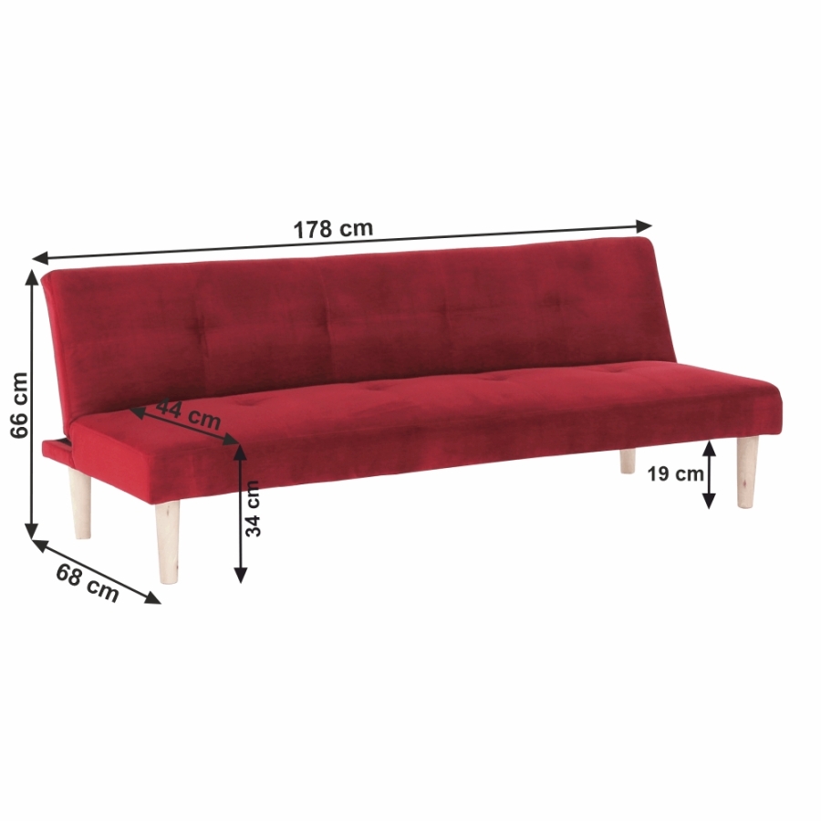 Anyag: Velvet szövet/ fa A szövet kopásállósága: 80 000 Martindale Szín: bőrdó/tölgy Méretek (SzéxMéxMa): 178x68x66 cm Ágyfunkcióval Fekvőfelület (SzéxMéxMa): 178x84x34 cm Ülés magassága: 34 cm Ülés mélysége: 44 cm Bontásban szállítva.