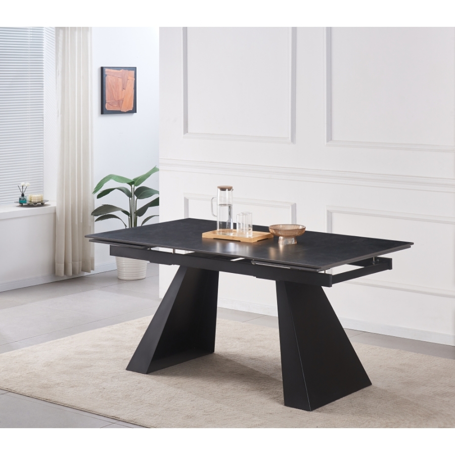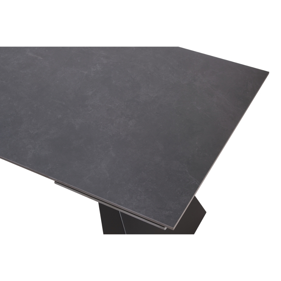 Asztallap anyaga: kerámia Szín: grafit Láb szerkezete: fém Szín: fekete Méretek (SzxMéxMa): 160-240,5x90x78 cm Felső lap anyagvastagsága: 1,2 cm Praktikus 6-8 fő részére alkalmas Teherbírás: 25 kg Szétszerelve szállítva
