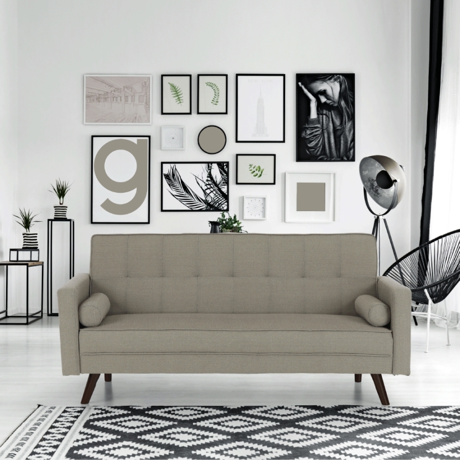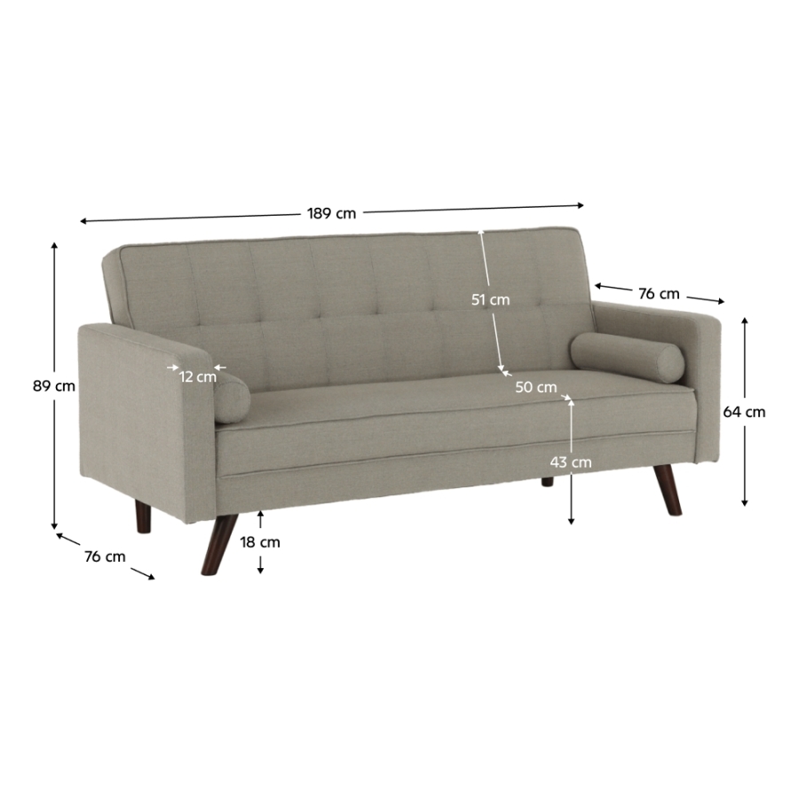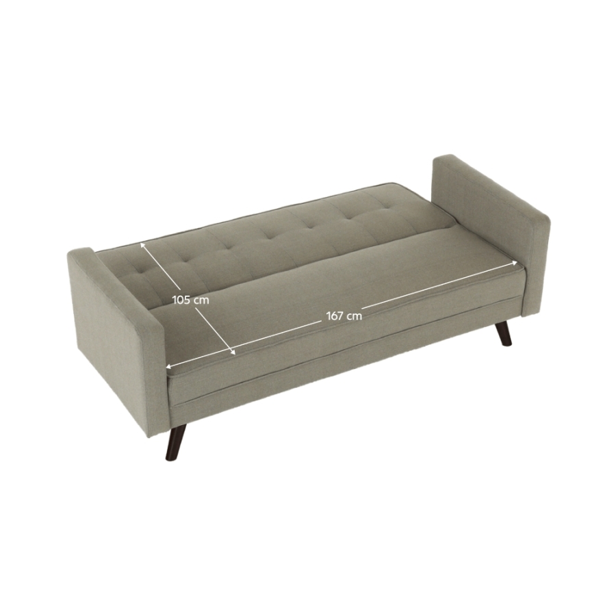 Kinyitható kanapé OTISA Anyag: anyag/fa A szövet kopásállósága: 40 000 Martindale Szín: szürkésbarna TAUPE Méretek(SzéxMéxMa): 189x76x89 cm Fekvőfelület mérete (SzéxHo): 167x105 cm Ülésmagasság: 43 cm Ülésmélység: 50 cm Teherbírás: 160 kg Az alsó tér magassága a padlótól: 18 cm Szétszerelve szállítva.