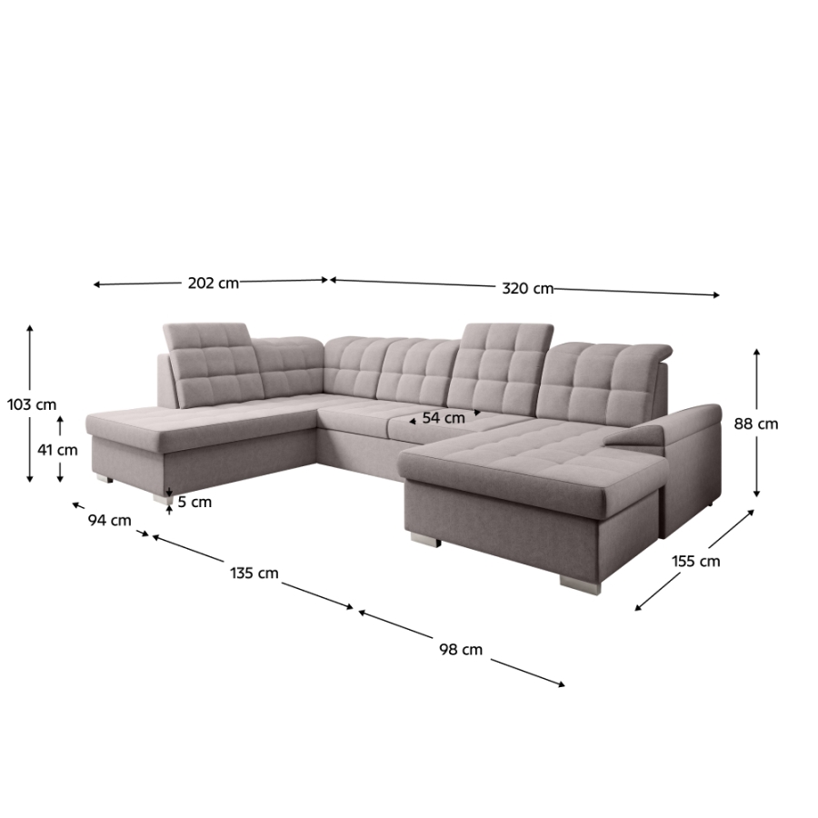 Méretek (SzxMéxMa): 320x202/155x88/103 cm