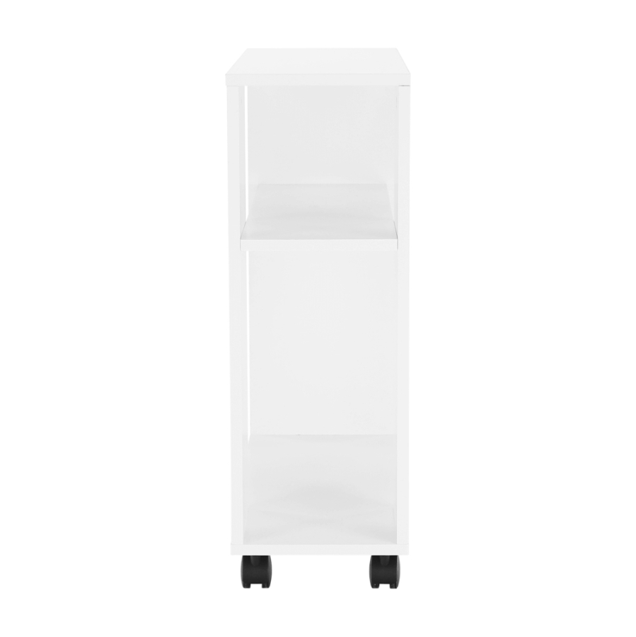 "Kisasztal kerekekkel, fehér színben. Méretek (SzéxMéxMa): 60x24x70 cm Anyag vastagsága: 15 mm"