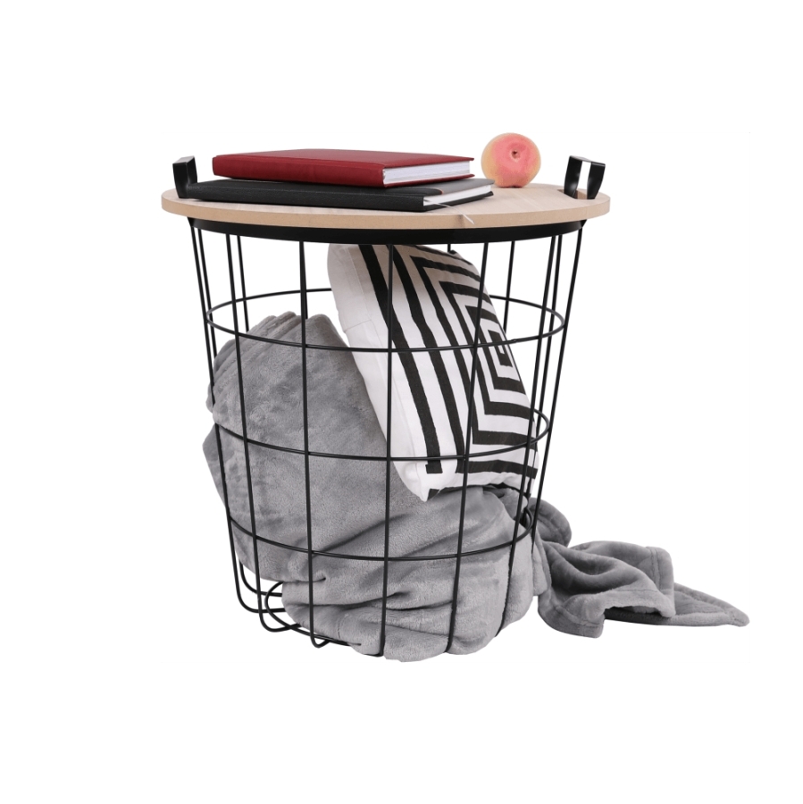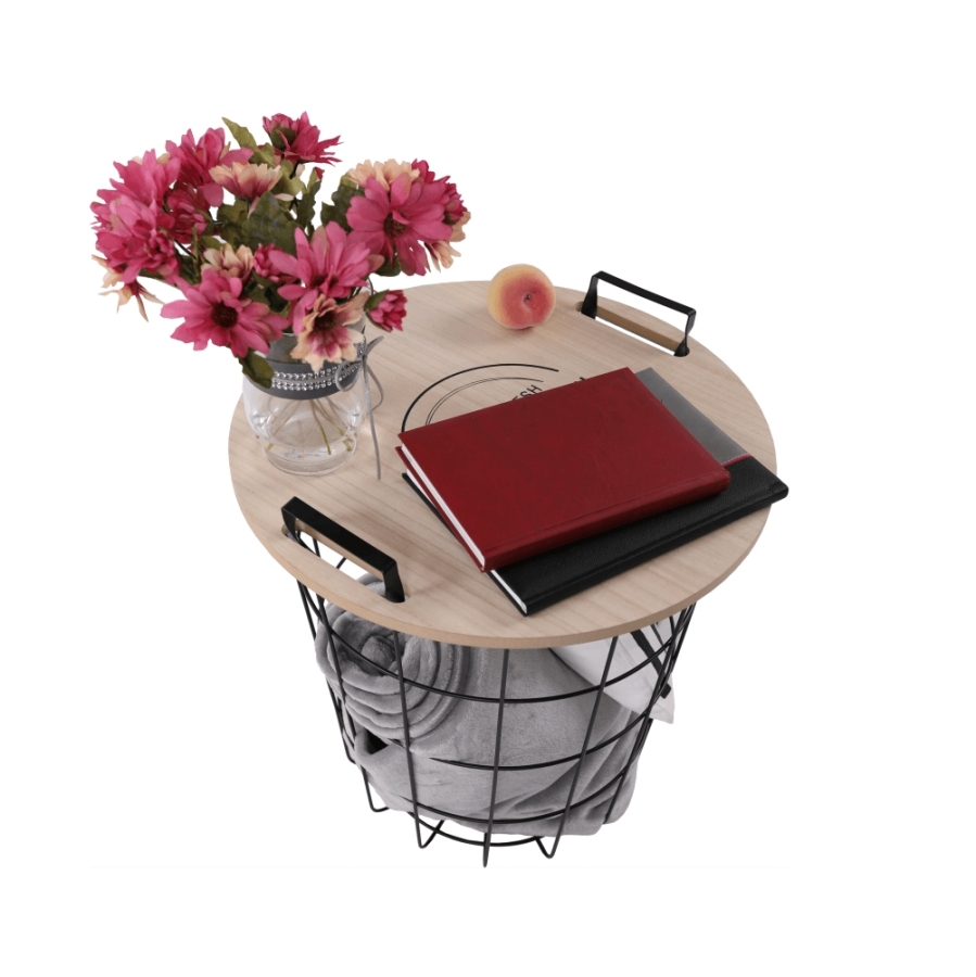 Kisasztal NANDO Anyag: MDF/fém Szín: természetes minta/fekete Méretek (SzéxMéxMa): 45x45x48x cm Szállítás szétszerelve.