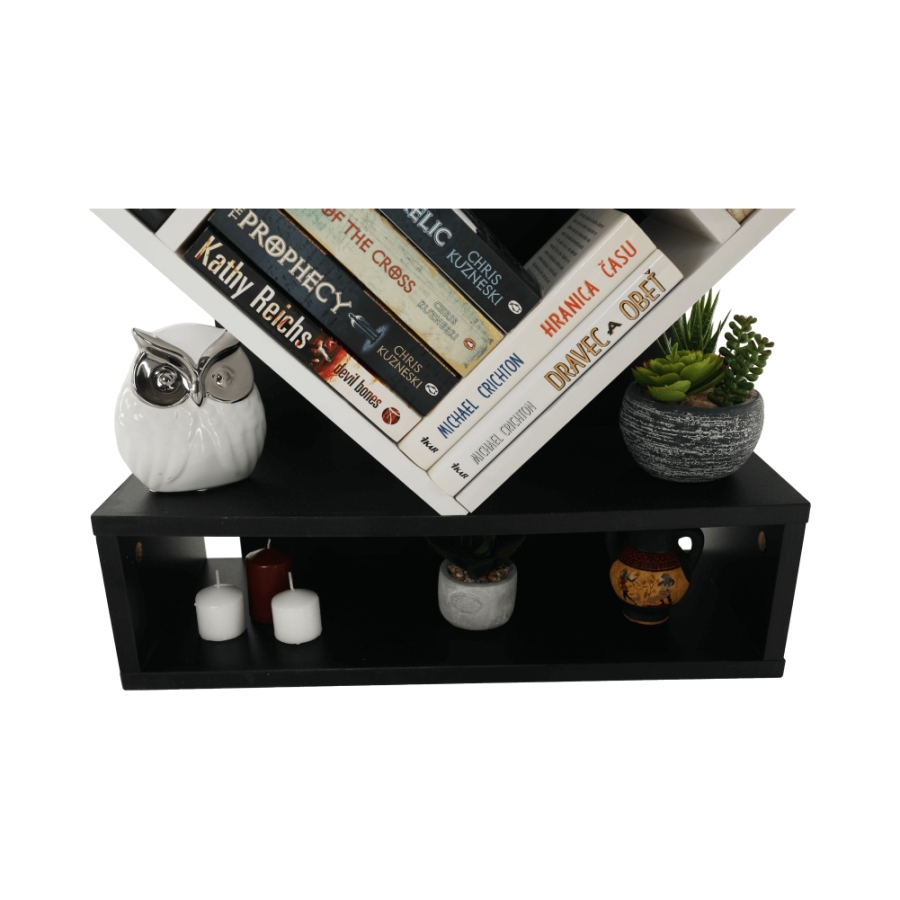 Többfunkciós könyvespolc VEVEY Anyag: DTD Szín: fehér/fekete Méretek (SzéxMéxMa): 59x21,6x150 cm.