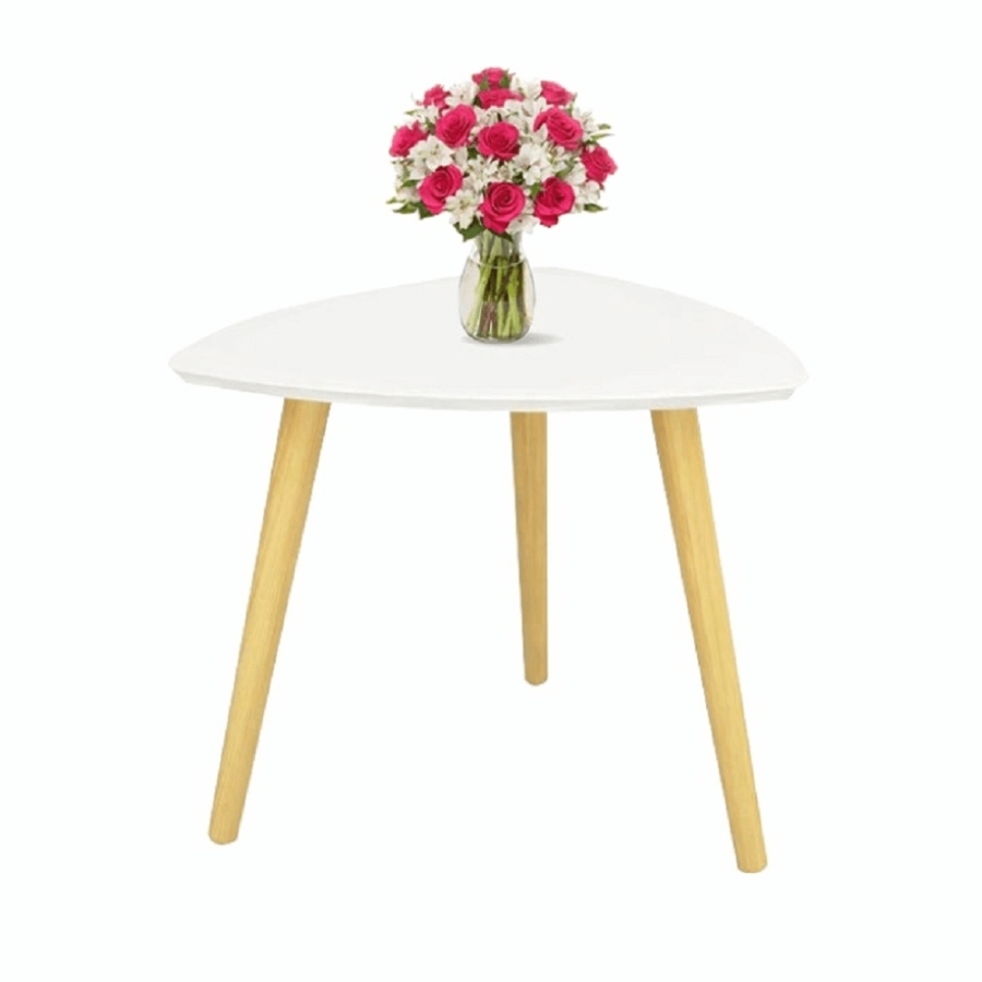 Modern konzolasztal TAVAS Anyag: MDF / fa Szín: fehér/ natúr fa Méretek (SzéxMéxMa): 48x48x40 cm