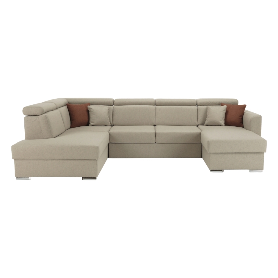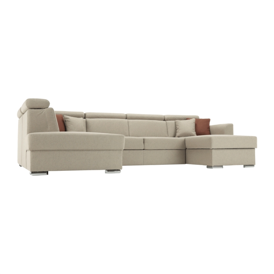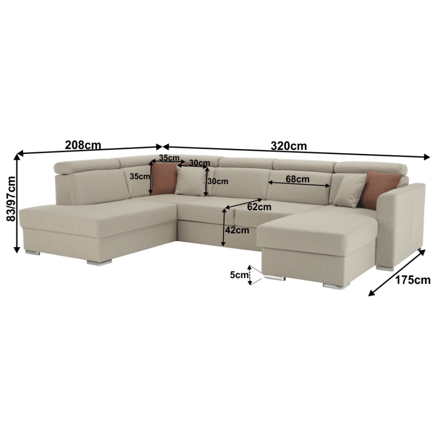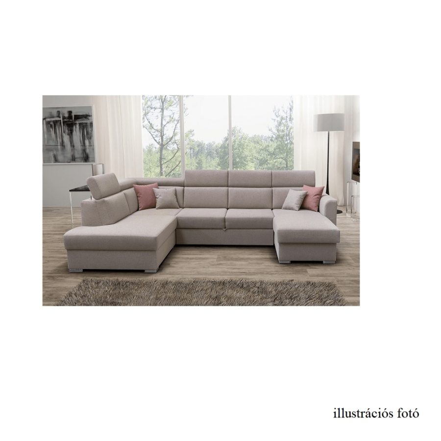 Luxus kivitelű ülőgarnitúra ágyfunkcióval és ágyneműtartóval, MARIETA U Anyaga: Cablo szövet A szövet kopásállósága: 72 000 Martindale Színe: bézs 02/téglavörös 05 Méretek (SzéxMéxMa): 320x208-175x83-97 cm Ülőmagasság: 42 cm Ülőmélység: 62 cm Ágyfunkcióval Fekvőfelület (SzéxHo): 130x260 cm Az alsó tér magassága a padlótól: 5 cm Terhelhetőség ágyanként: 90 kg Rugós ülőfelület Balos állású U alakú Díszpárnával szállítva Állítható fejtámla 6 különböző szögben állítható fejtámlák Ágyneműtartóval Lapraszerelten szállítva Rendelhető 7-féle színváltozatban Cablo szövetből vagy 7-féle színárnyalatban textilbőrből. Egyedi megrendelés esetén szükség van az adott összegnek a 10%-át befizetni,mint előleg. Az előleg befizetése után az Ön követelményét benyújtjuk a gyártónak. Szállítási határidő 8-10 hét.