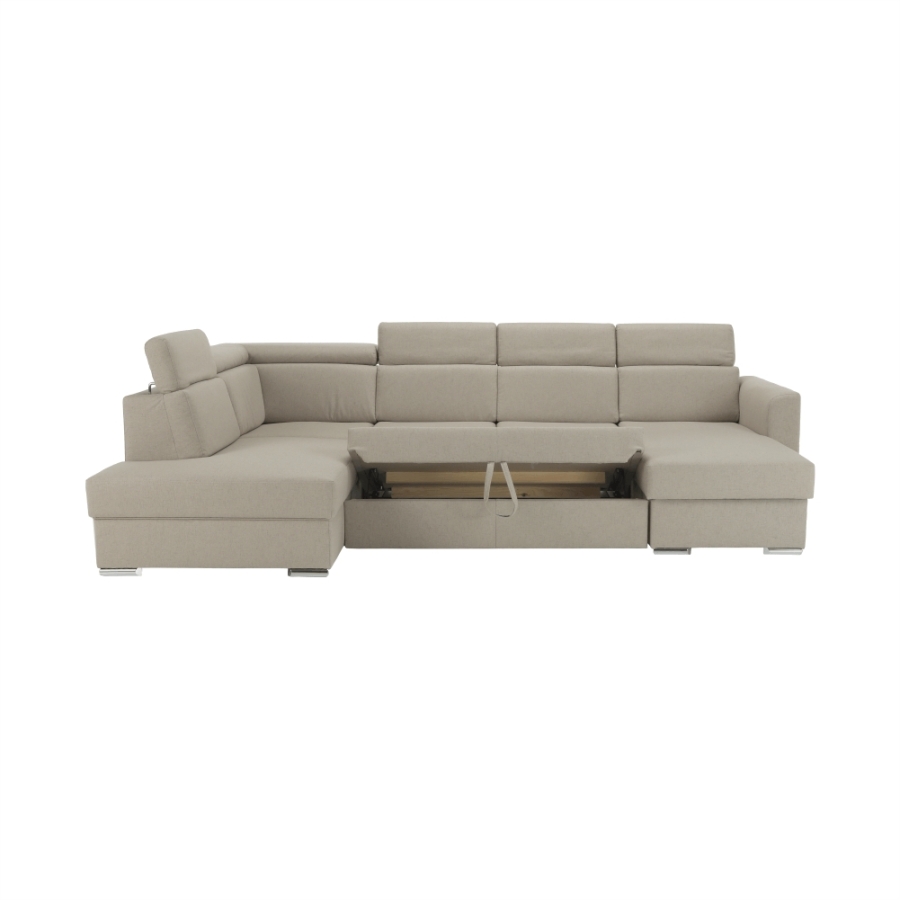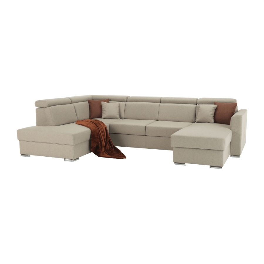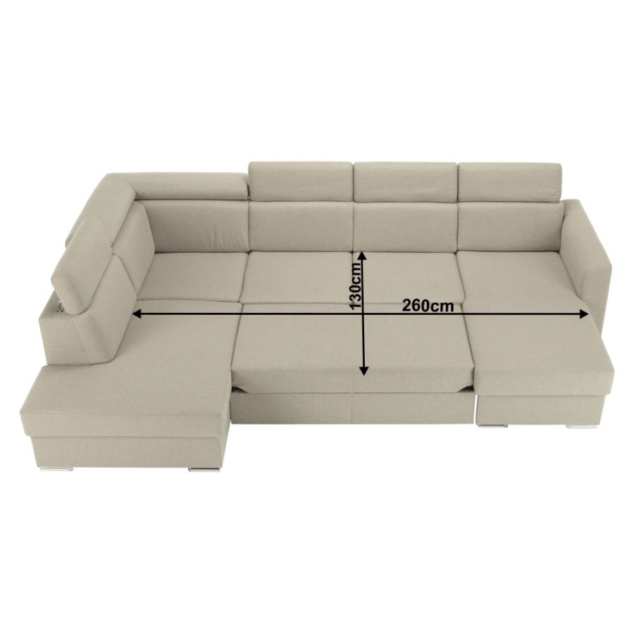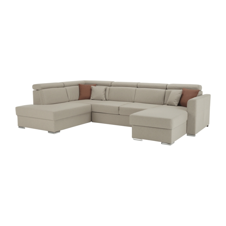 Luxus kivitelű ülőgarnitúra ágyfunkcióval és ágyneműtartóval, MARIETA U Anyaga: Cablo szövet A szövet kopásállósága: 72 000 Martindale Színe: bézs 02/téglavörös 05 Méretek (SzéxMéxMa): 320x208-175x83-97 cm Ülőmagasság: 42 cm Ülőmélység: 62 cm Ágyfunkcióval Fekvőfelület (SzéxHo): 130x260 cm Az alsó tér magassága a padlótól: 5 cm Terhelhetőség ágyanként: 90 kg Rugós ülőfelület Balos állású U alakú Díszpárnával szállítva Állítható fejtámla 6 különböző szögben állítható fejtámlák Ágyneműtartóval Lapraszerelten szállítva Rendelhető 7-féle színváltozatban Cablo szövetből vagy 7-féle színárnyalatban textilbőrből. Egyedi megrendelés esetén szükség van az adott összegnek a 10%-át befizetni,mint előleg. Az előleg befizetése után az Ön követelményét benyújtjuk a gyártónak. Szállítási határidő 8-10 hét.