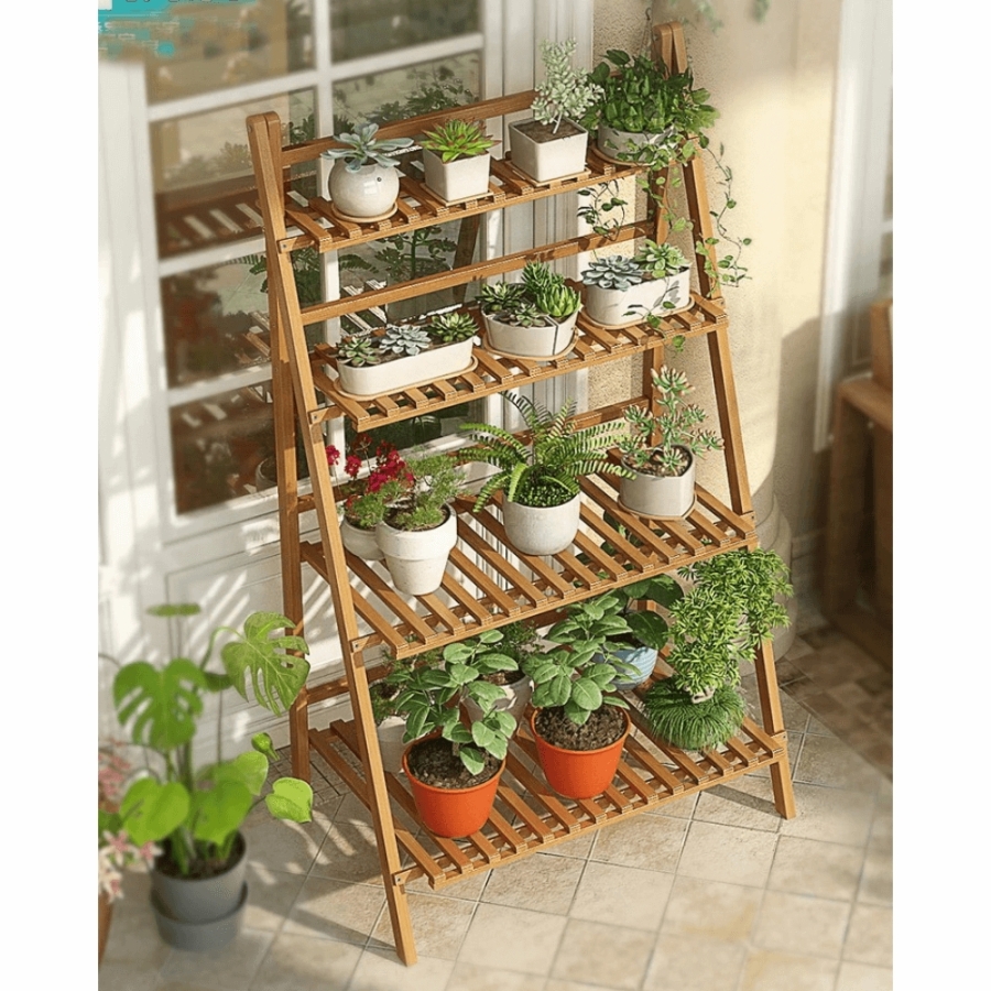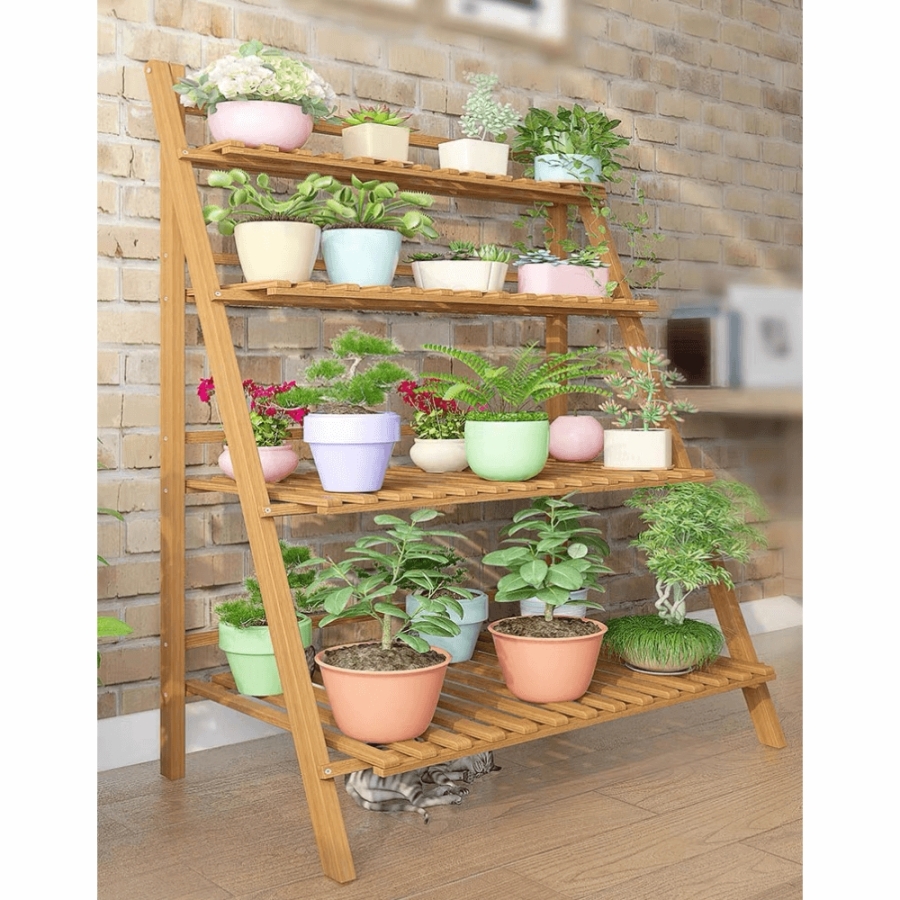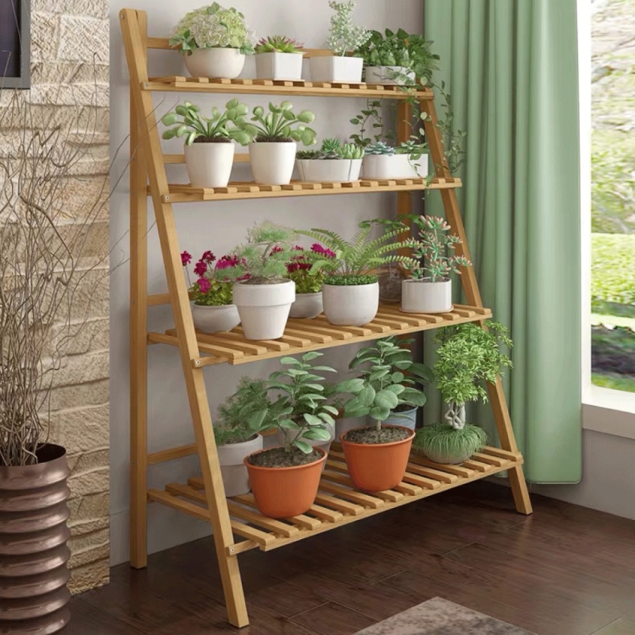 Összecsukható állvány NEPEL 2 + ajándék Anyag: bambusz Szín: bambusz Méretek (SzéxMéxMa): 70x47x122 cm Négy polc Egy pár kesztyű ajándékba Kerti szerszámkészlet ajándékba Szállítás szétszerelve
