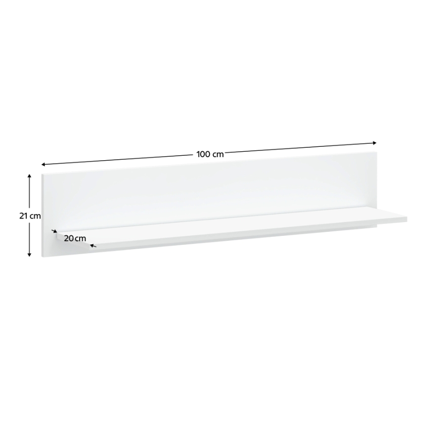 Anyag: laminált DTD Szín: fehér Méretek (SzxMéxMa): 100x20x21 cm Anyag vastagsága: 1,6 cm ABS élek Modern dizájn Nyitott tárhely Bontásban szállítva