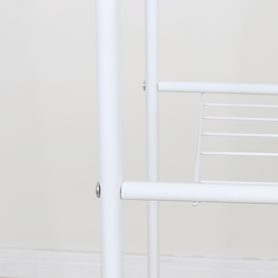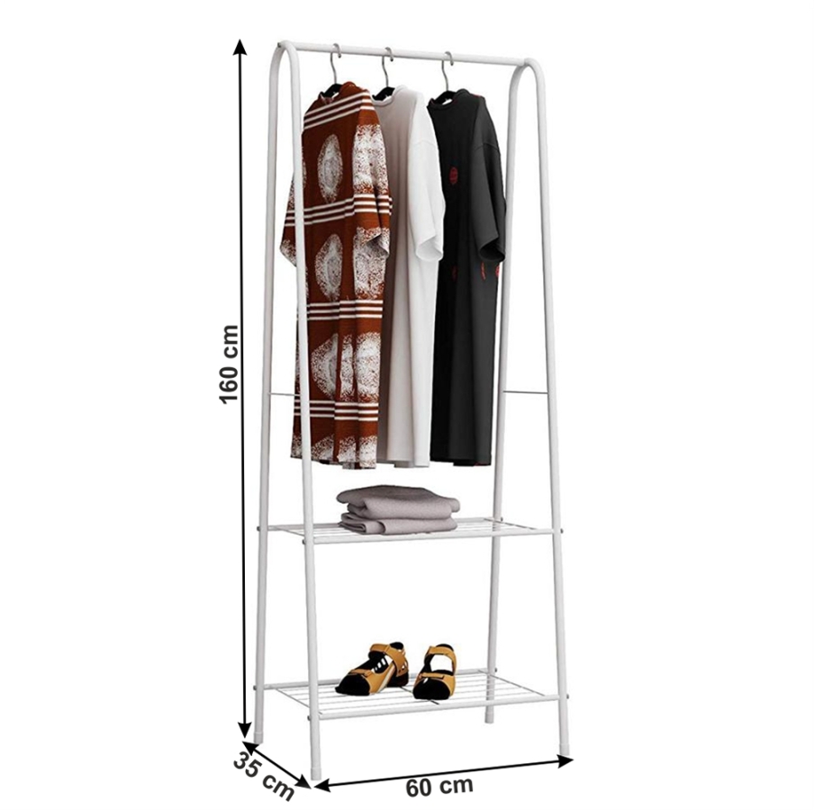 Anyag: fém Kivitelezés: fehér Méretek (SzxMéxMa): 60x35x160 cm Szilárd szerkezet Két polc Akasztórúd Szétszerelve szállítjuk