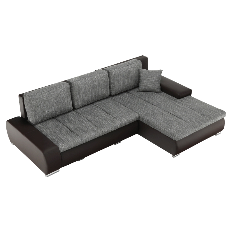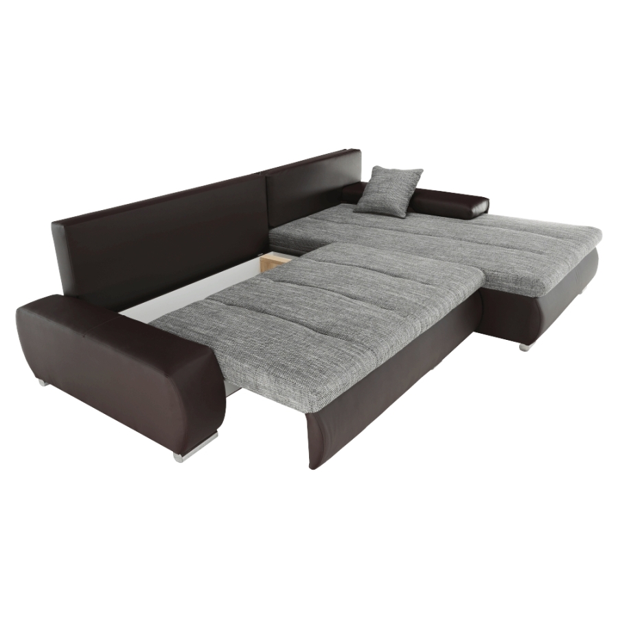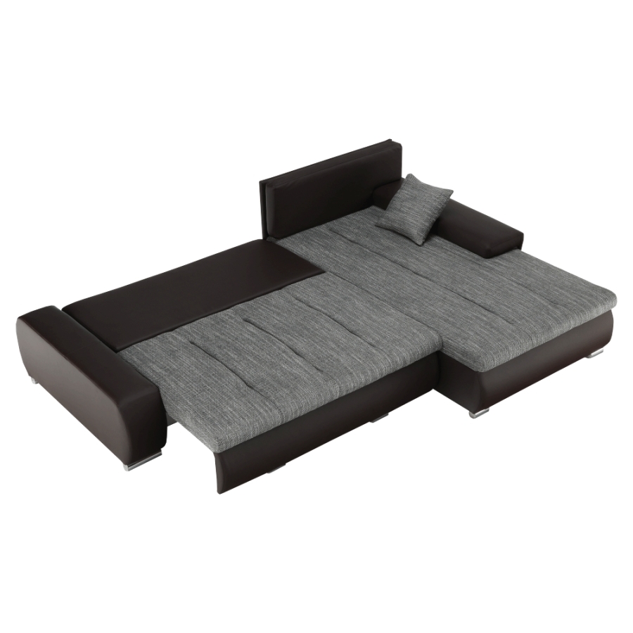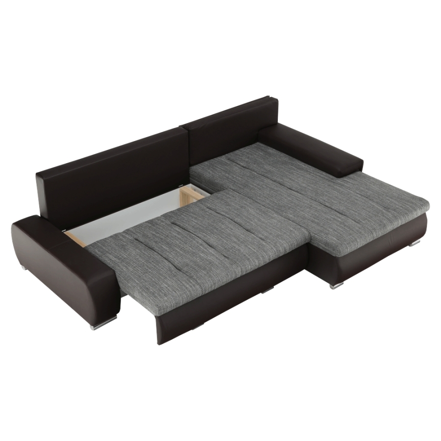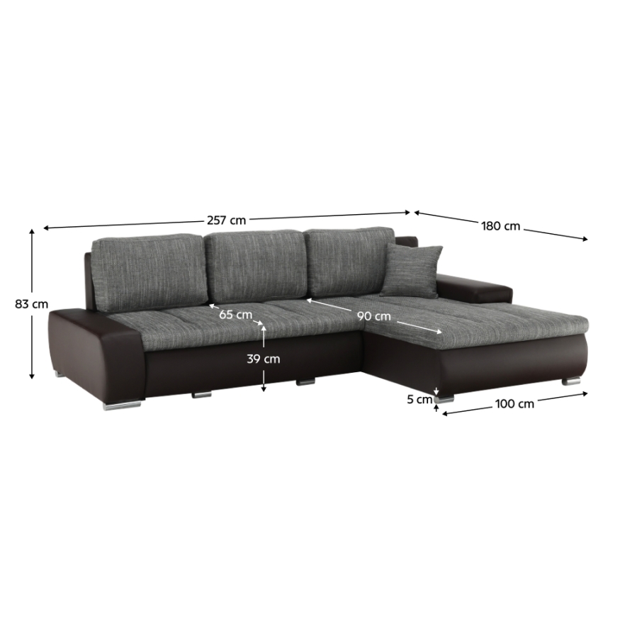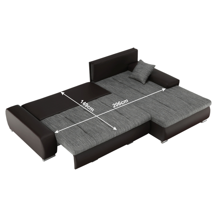 Anyaga: textilbőr/szövet Berlin A szövet kopásállósága a Martindale teszt szerint Berlin: 55 000 ciklus Az ekobőr kopásállósága a Martindale teszt szerint ekobőr: 100 000 ciklus Színe: barna/szürkésbarna melír Méretek (SzéxMéxMa): 257x180x83 cm Ülőmagasság: 39 cm Ülőmélység: 65 cm Ágyfunkcióval Fekvőfelület (SzéxHo): 149x206 cm Ágyneműtartóval Rugós kivitelű Díszpárnával szállítva Az alsó tér magassága a padlótól: 5 cm Lapraszerelten szállítva