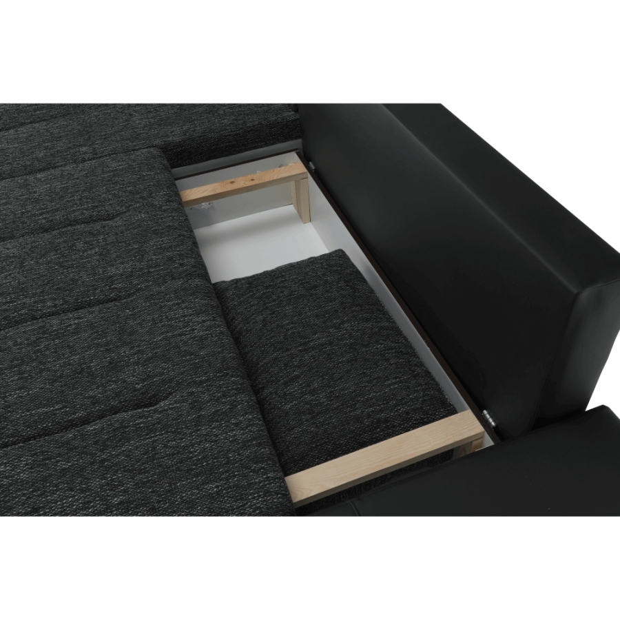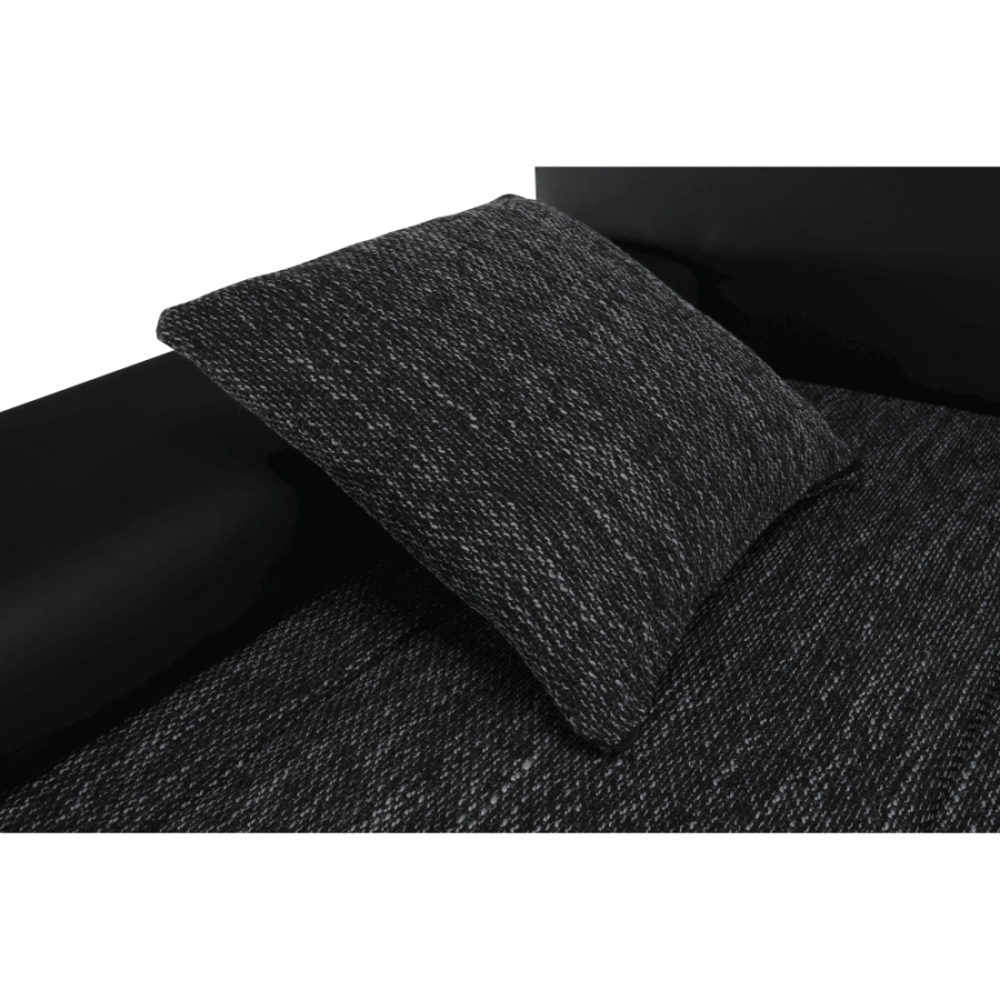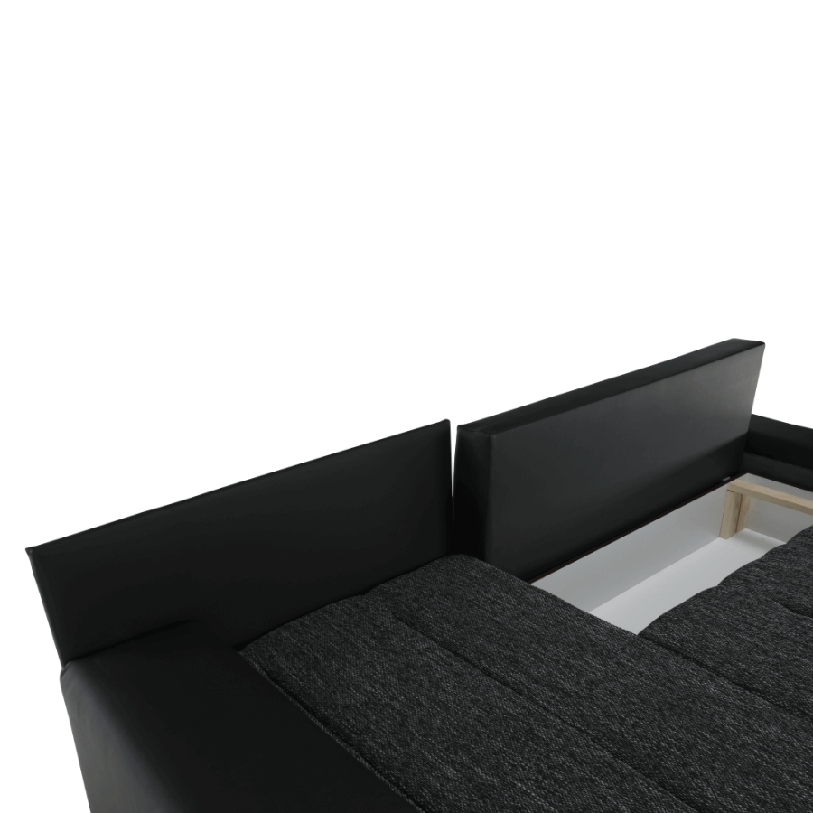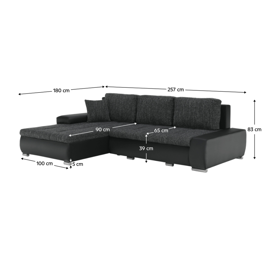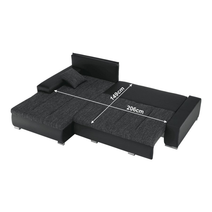 Anyaga: textilbőr/szövet Berlin A szövet kopásállósága a Martindale teszt szerint Berlin: 55 000 ciklus Az ekobőr kopásállósága a Martindale teszt szerint ekobőr: 100 000 ciklus Színe: fekete/fekete melír Méretek (SzéxMéxMa): 257x180x83 cm Ülőmagasság: 39 cm Ülőmélység: 65 cm Ágyfunkcióval Fekvőfelület (SzéxHo): 149x206 cm Ágyneműtartóval Rugós kivitelű Díszpárnával szállítva Az alsó tér magassága a padlótól: 5 cm Lapraszerelten szállítva