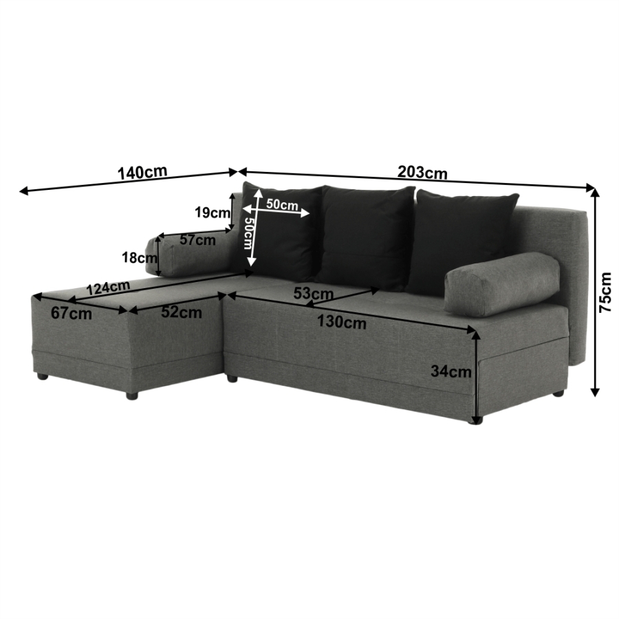 Anyag: szövet Szín: szürke/fekete Méretek (SzéxMéxMa): 203x140x75 cm Szétnyitható Alvófelület (SzéxH):127x203 cm Ülésmagasság: 39 cm Ülésmélység: 53-82 cm Az alsó tér magassága a padlótól: 4 cm Töltés: molitán Három támasztó párna Két párna a karfák helyettesítésére Sarok Balos kivitel Molitán kitöltés Szállítás szétszerelve Megrendelés lehetséges az ábrázolt színváltozatokban, az ára 223 900 Ft . Egyedi megrendelés esetén szükség van az adott összegnek a 10%-át befizetni,mint előleg. Az előleg befizetése után az Ön követelményét benyújtjuk a gyártónak. Szállítási idő 6-8 hét.