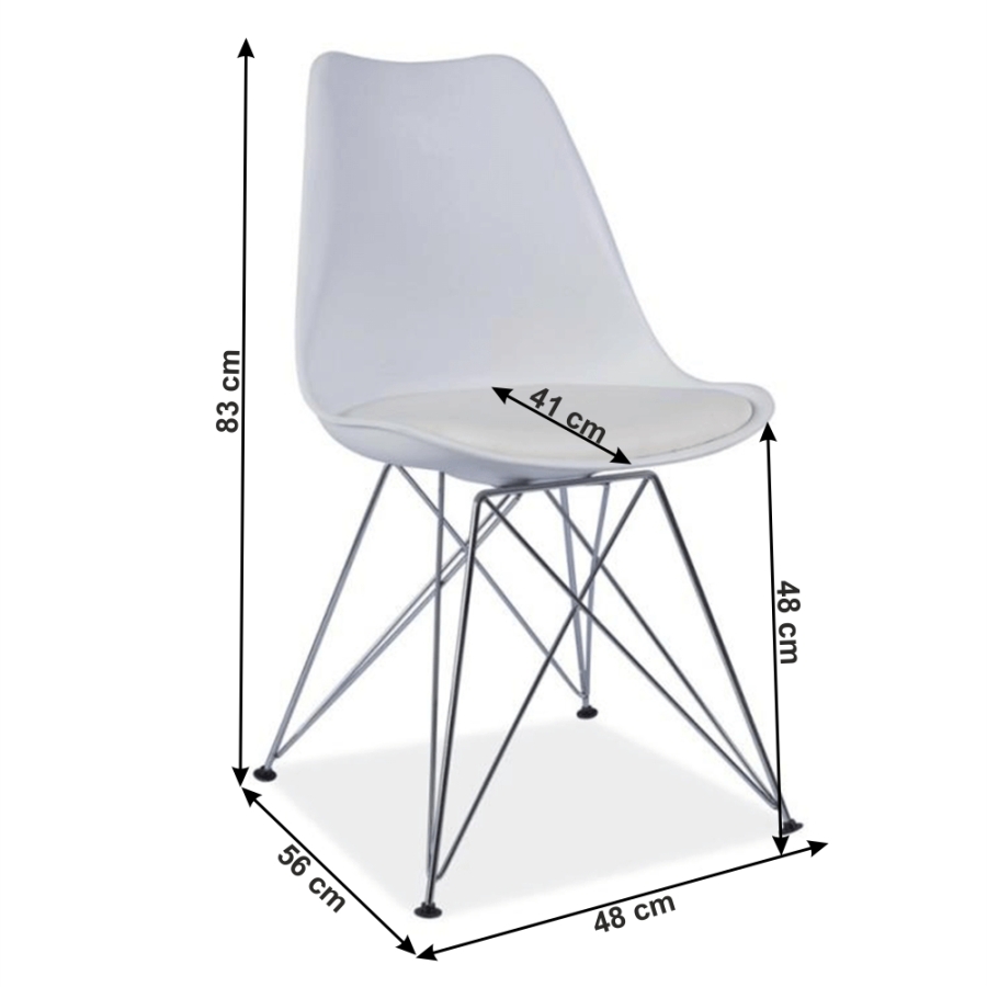 Anyaga: textilbőr/műanyag/krómozott lábak A szövet kopásállósága: 100 000 Martindale Színe: fehér Méretek (SzéxMéxMa): 48x56x83 cm Ülésmagasság: 48 cm Ülésmélység: 41 cm Teherbírás: 110 kg