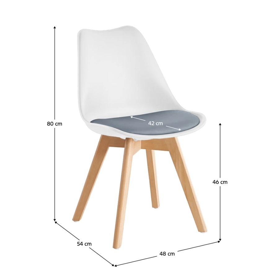 Anyag: fa/műanyag/textilbőr A szövet kopásállósága: 100 000 Martindale Szín: bükk/fehér/szürke Méretek (SzéxMéxMa): 48x54x80 cm Ülésmagasság: 46 cm Ülésmélység : 42 cm Éxtra puha ülőhellyel Terhelhetőség: 110 kg Bontásban szállítva.