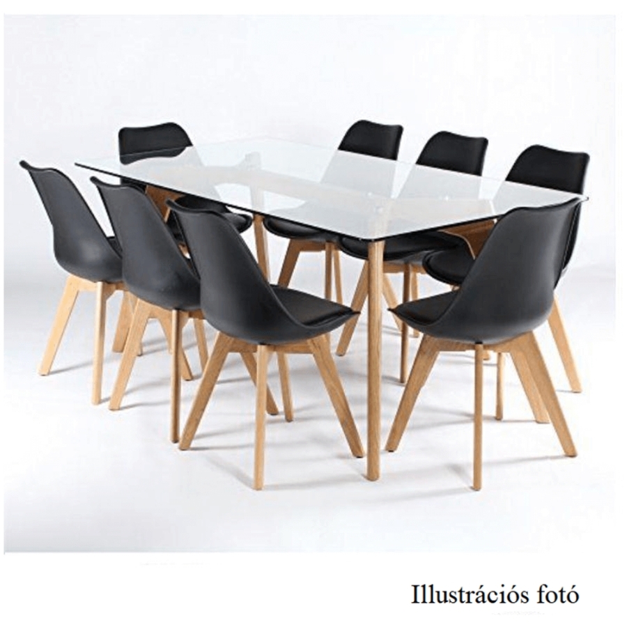 "Anyag: fa/műanyag/textilbőr A szövet kopásállósága: 100 000 Martindale Farba: bükk/fekete Méretek (SzéxMéxMa): 48x56x81 cm Ülésmagasság: 45 cm Ülésmélység : 41 cm Éxtra puha ülőhellyel Terhelhetőség: 110 kg Bontásban szállítva."