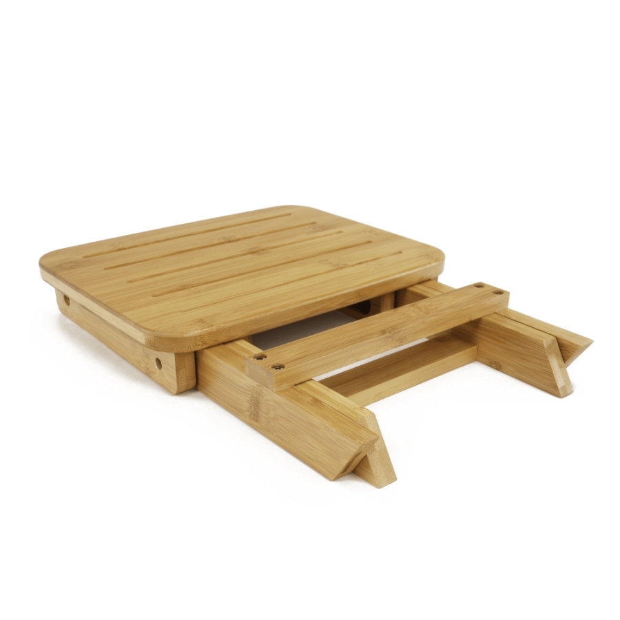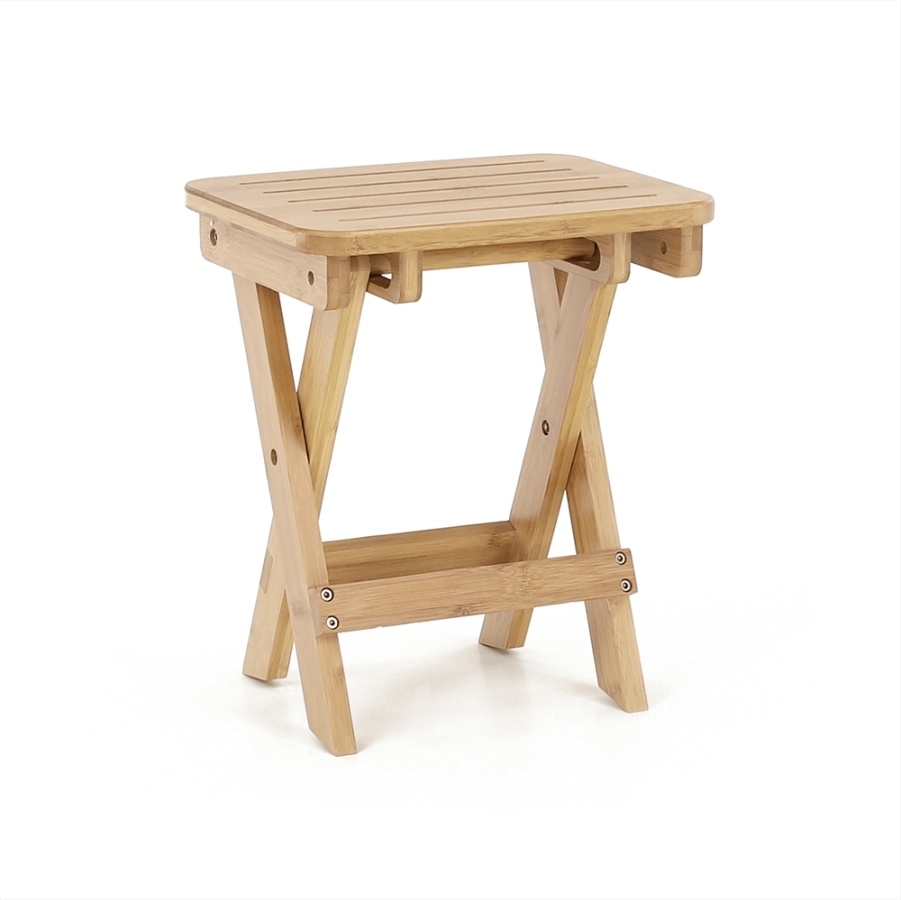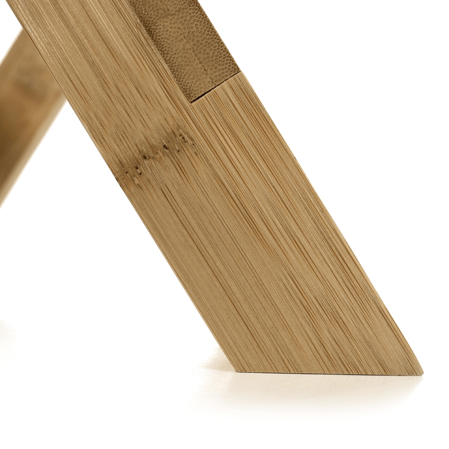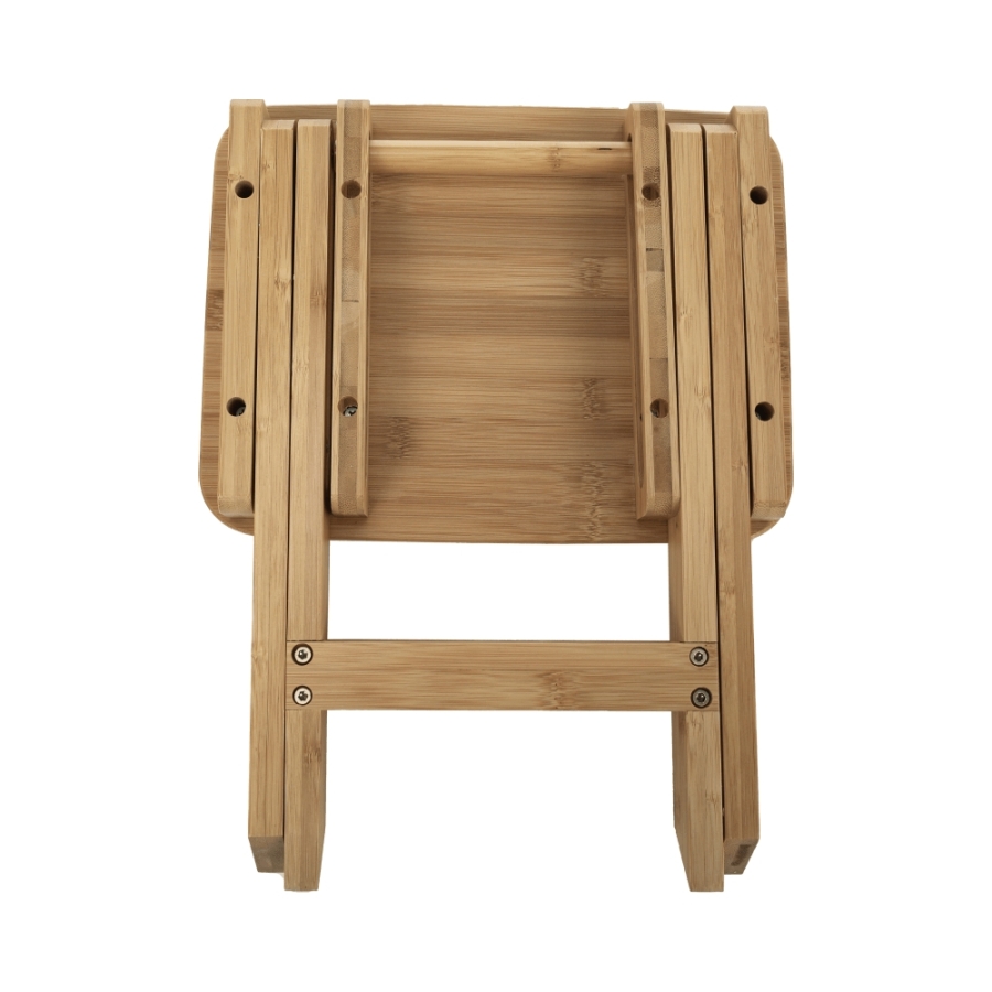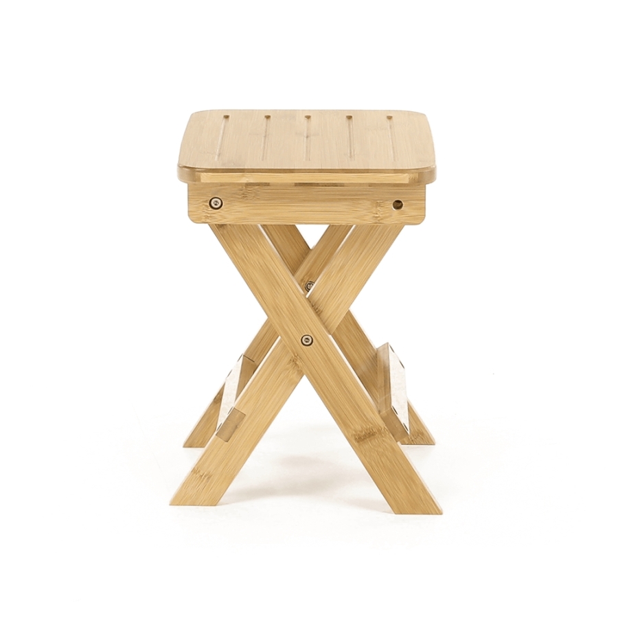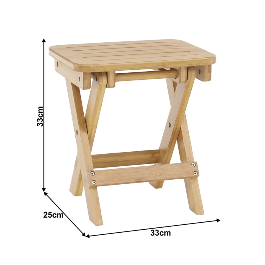 Anyag: lakkozott bambusz Szín: természetes Méretei (SzéxMéxMa): 33x25x33 cm Teherbírás: 100 kg Összecsukható Kültérbe nem alkalmas Egészben szállítva.