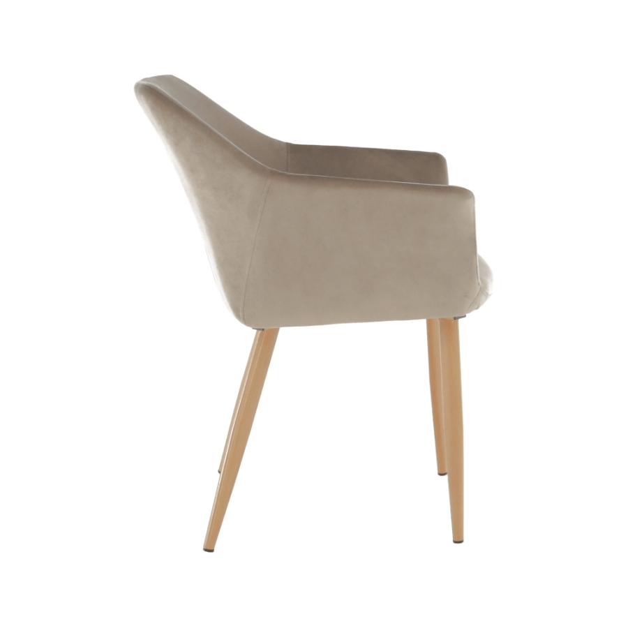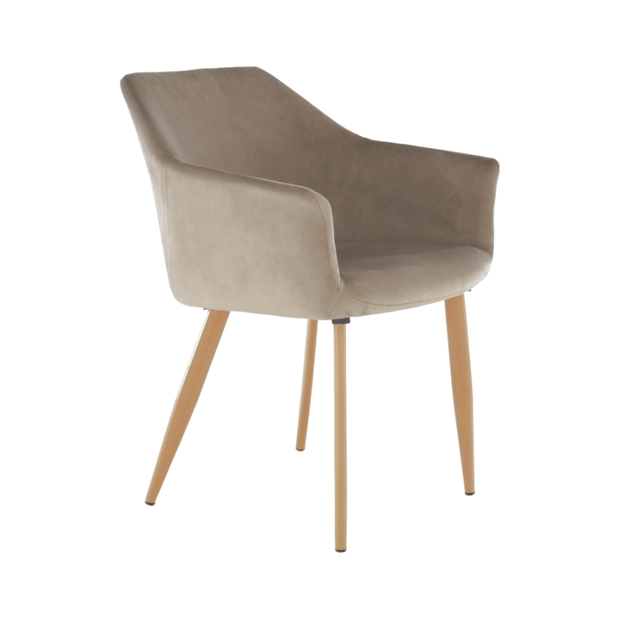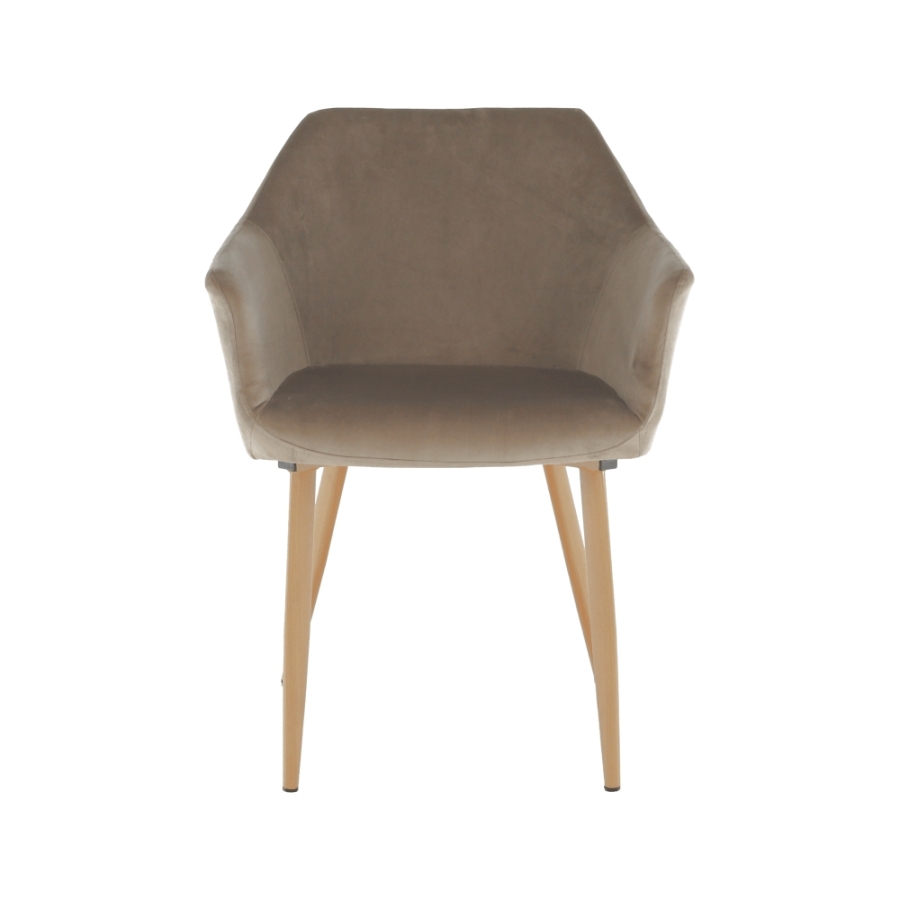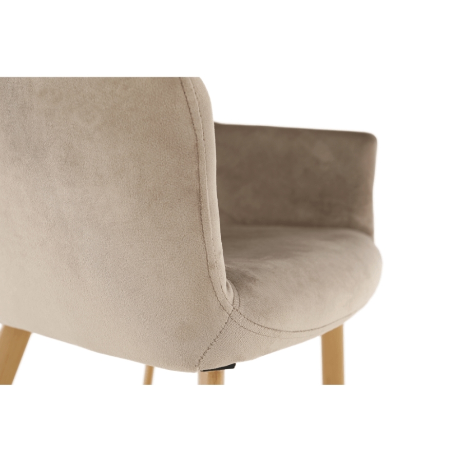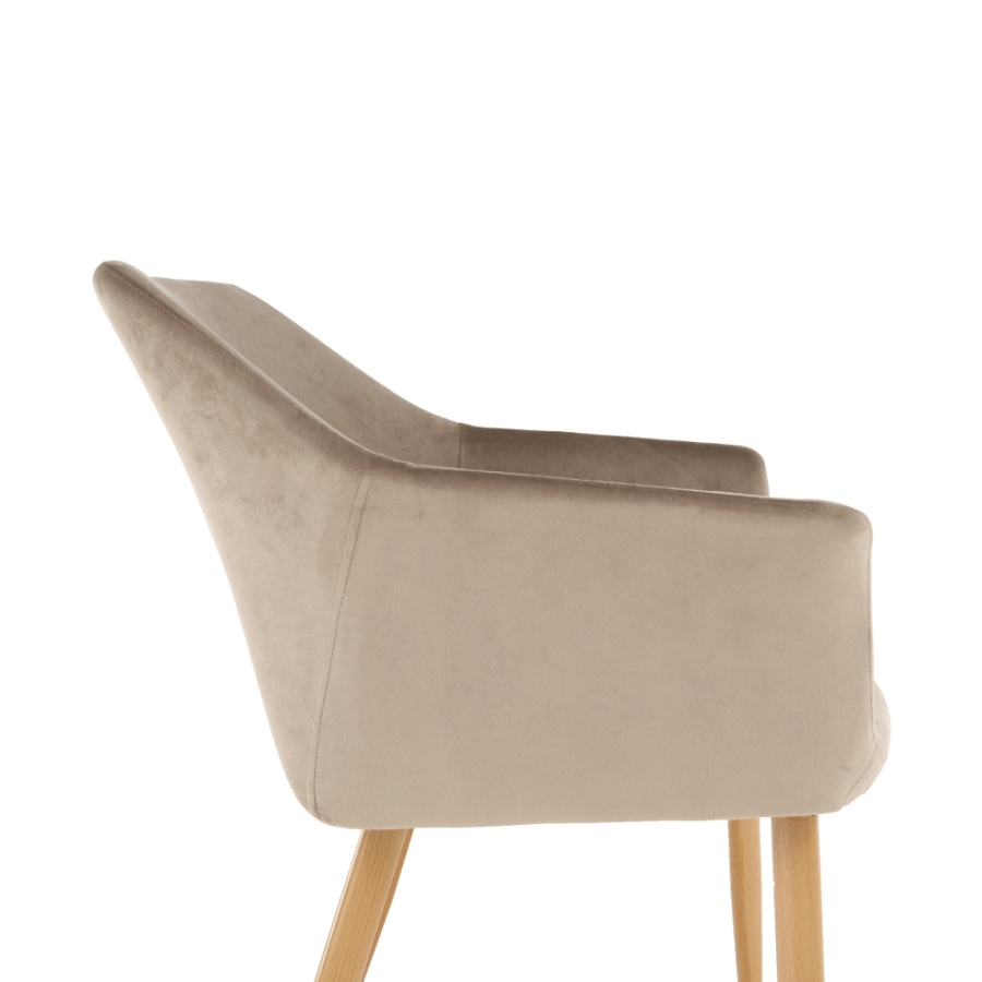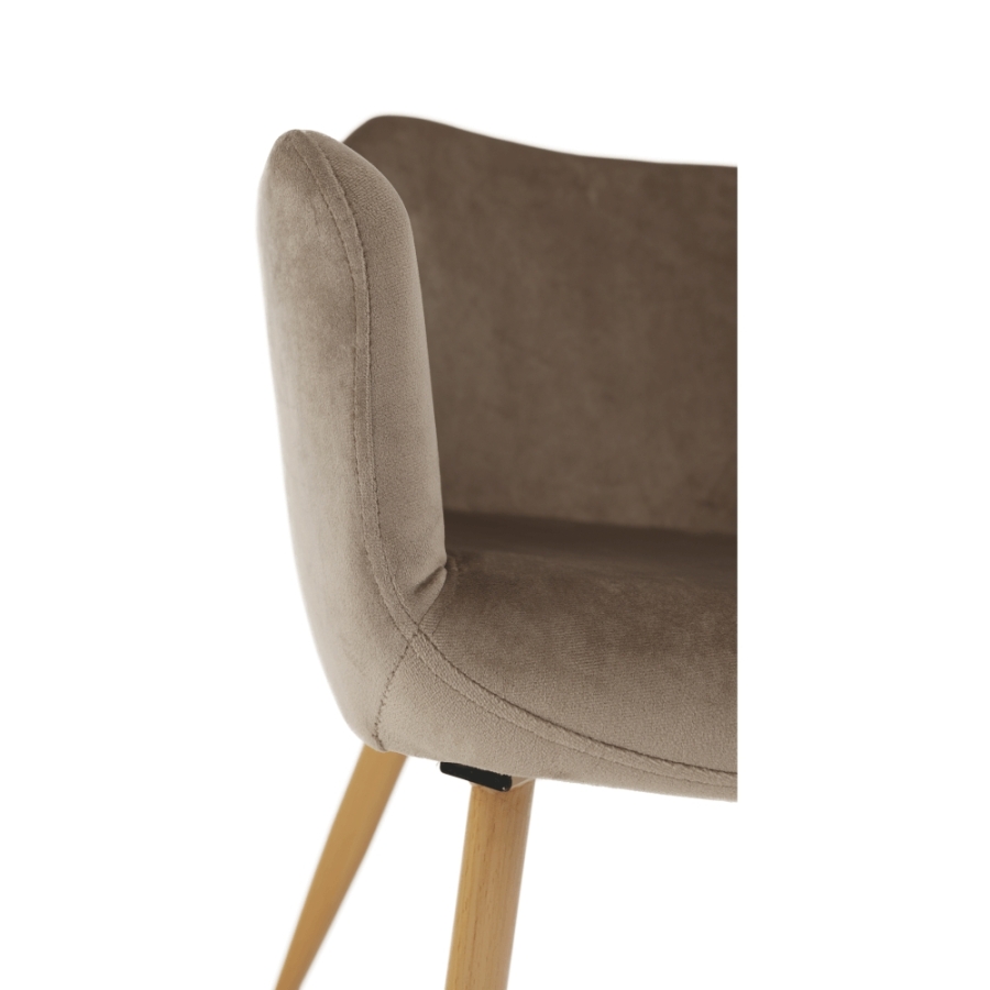 Design szék ODOVEL Anyag: velvet anyag/fém A szövet kopásállósága: 80 000 Martindale Szín: TAUPE/bükk Méretek (SzéxMéxMa): 56x63x82 cm Ülésmagasság: 49 cm Ülésmélység: 46 cm Terhelhetőség: 90 kg Szétszerelve szállítva.