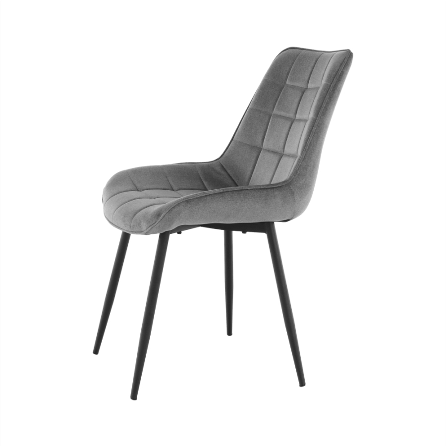 Szék SARIN Anyag: Velvet szövet/fém A szövet kopásállósága: 80 000 Martindale Szín: szürke/fekete Méretek (SzéxMéxMa): 54x64x82cm Ülésmagasság: 46 cm Ülésmélység : 42 cm Terhelhetőség: 120 kg Dekoratív varrás Bársony anyag Lapraszerelten szállítva