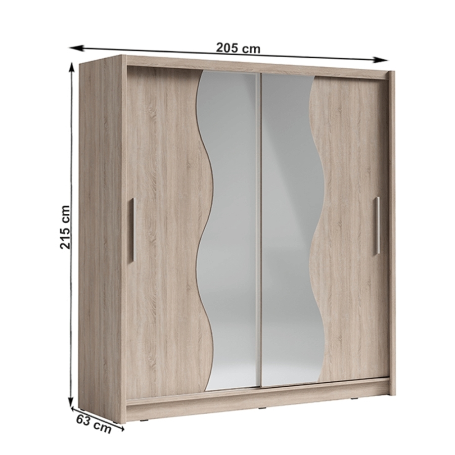 Szekrény tükörrel, tolóajtókkal BIRGAMO típus 1 Anyag: DTD laminált/tükör Szín: tölgy sonoma Méretek(SzéxMéxMa): 205x63x215 cm Lapraszerelve szállítva.